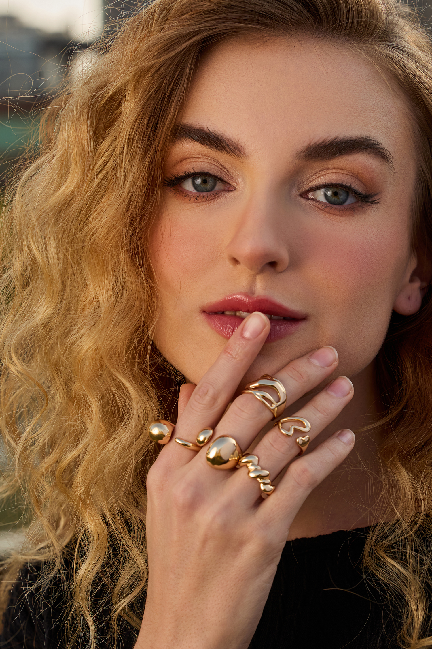 Abstraktes goldfarbenes Ring-Set