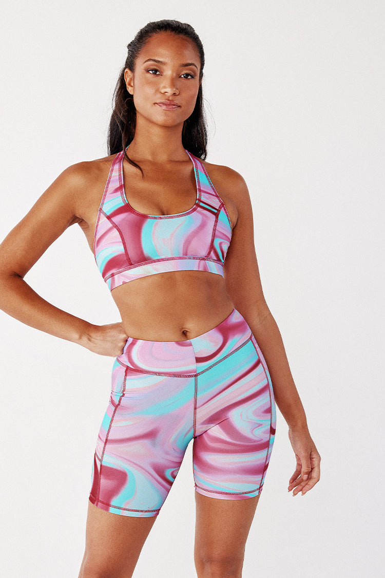 HomeAbstraktes Marmor Criss Cross Sport-BH Biker Shorts Activewear Set