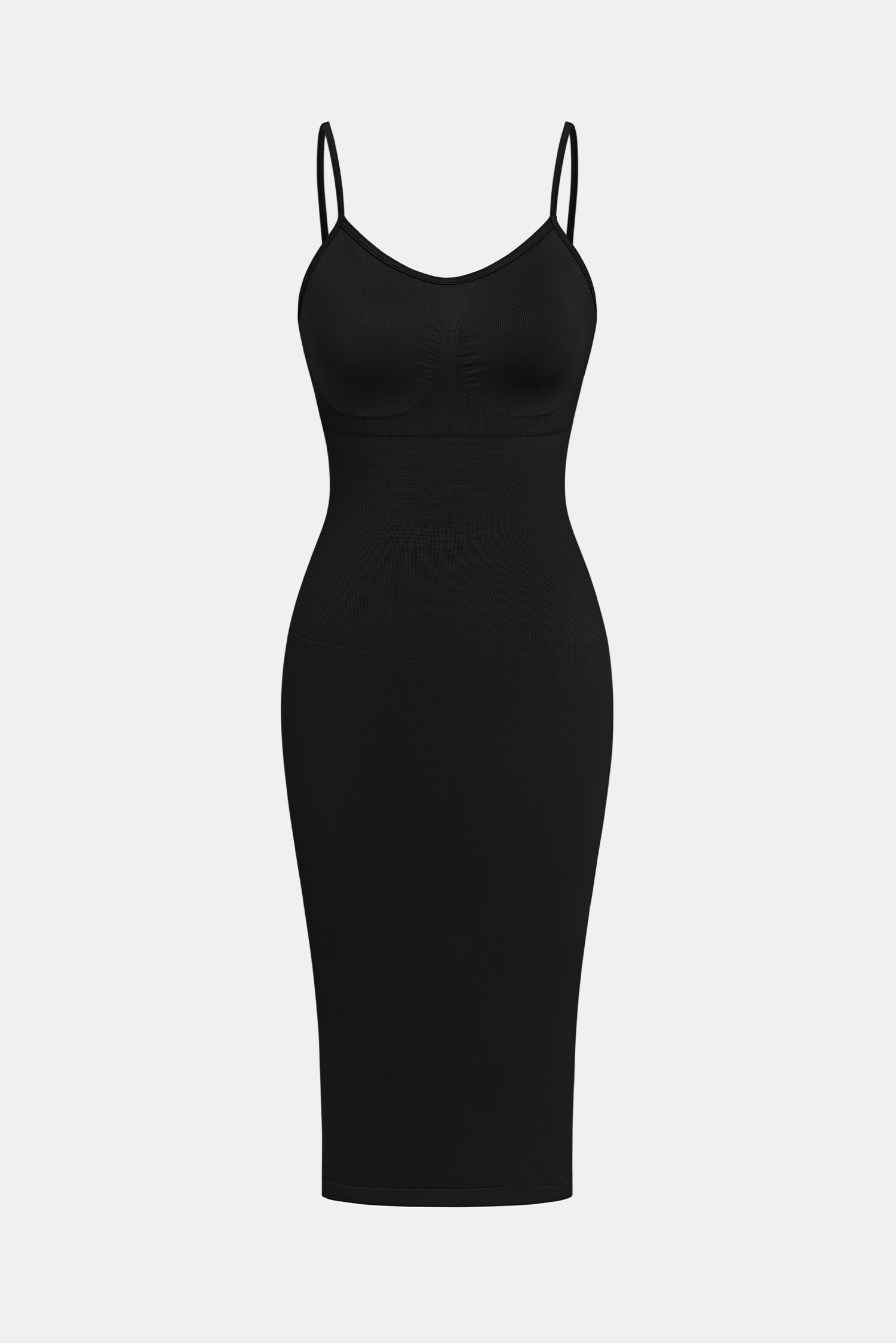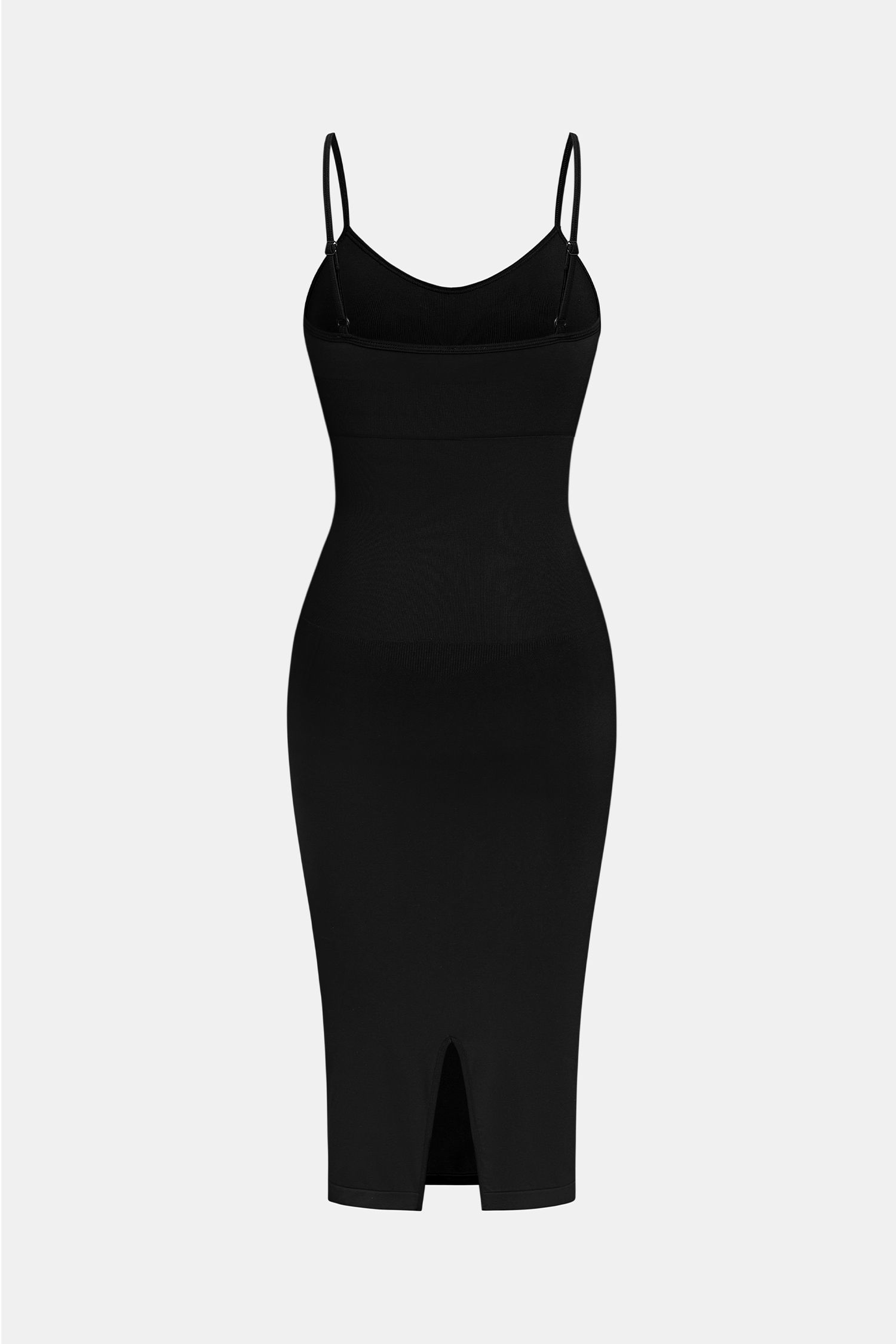 Das schwarze Shapewear-Midikleid verleiht Ihnen eine starke, selbstbewusste Ausstrahlung! Bauchstütze und starke Kompression zaubern eine glatte, schmeichelhafte Silhouette, während die Midi-Länge für einen schicken und vielseitigen Look sorgt.