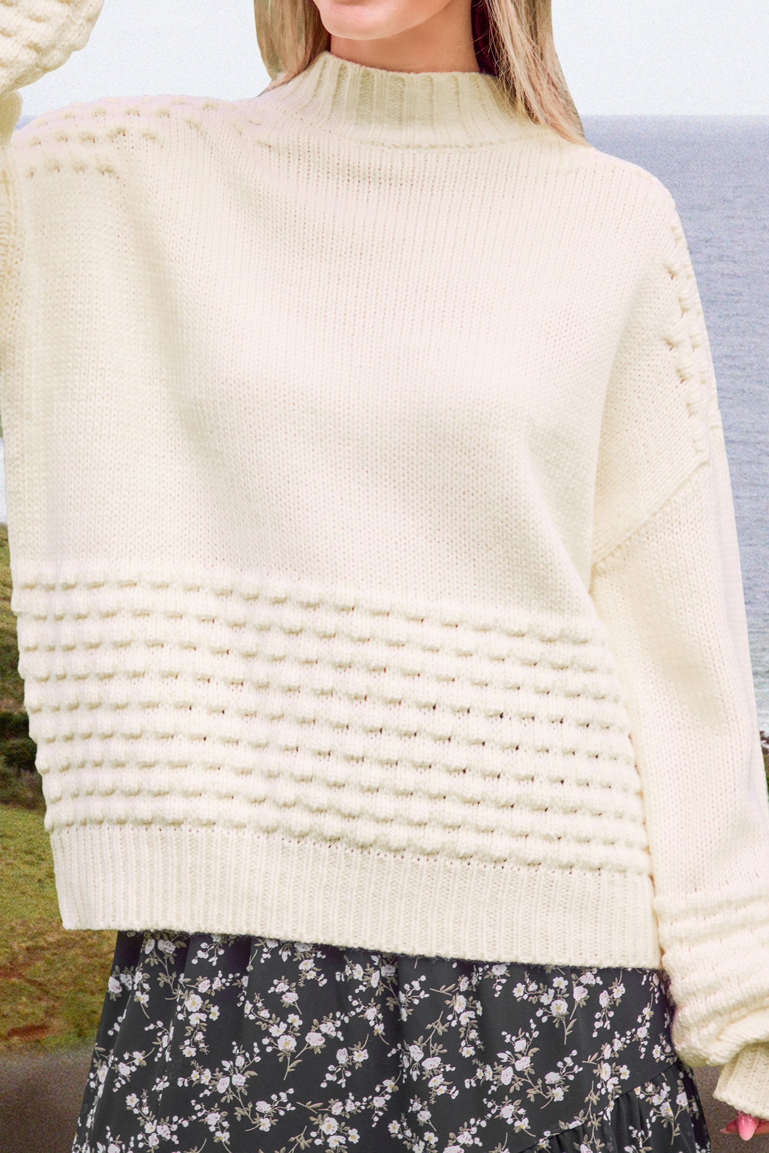 Aprikosenfarbener langärmeliger Pullover mit Mokkakragen