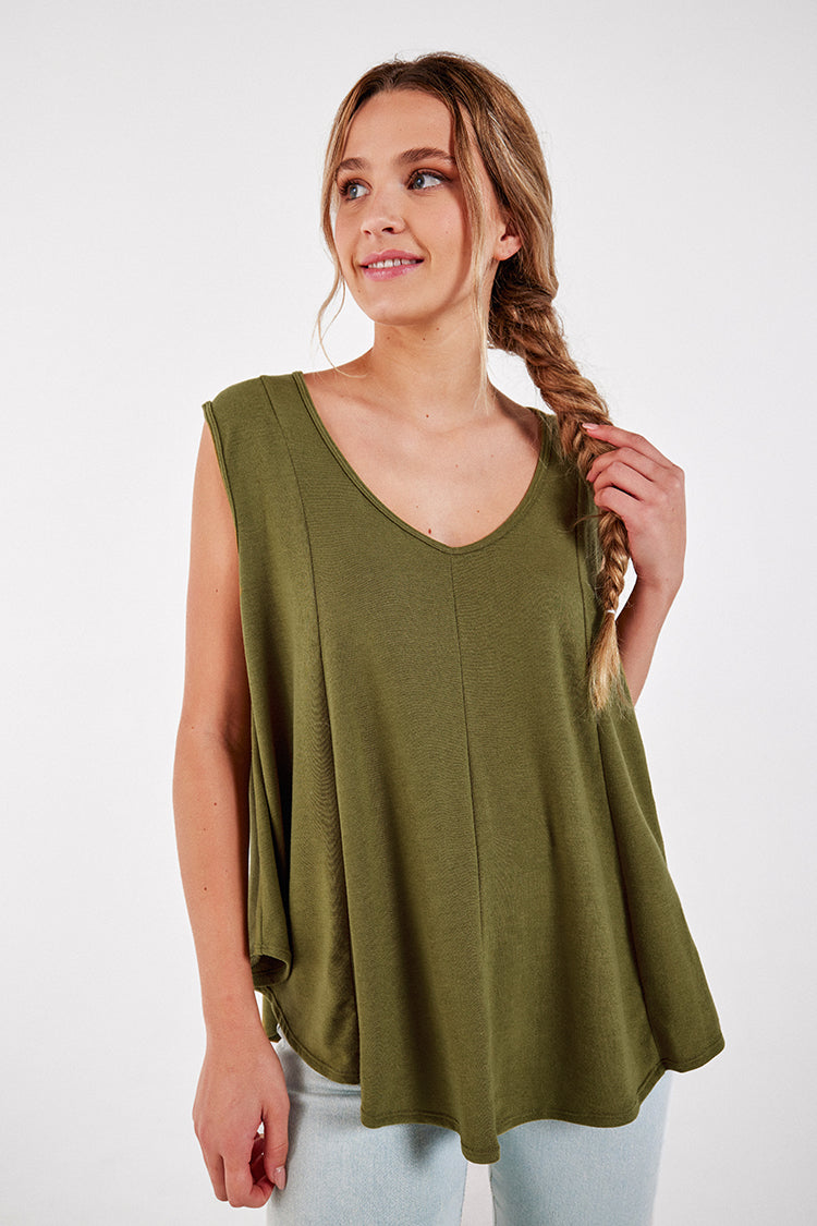 Ärmelloses Oberteil mit V-Ausschnitt in Übergöße