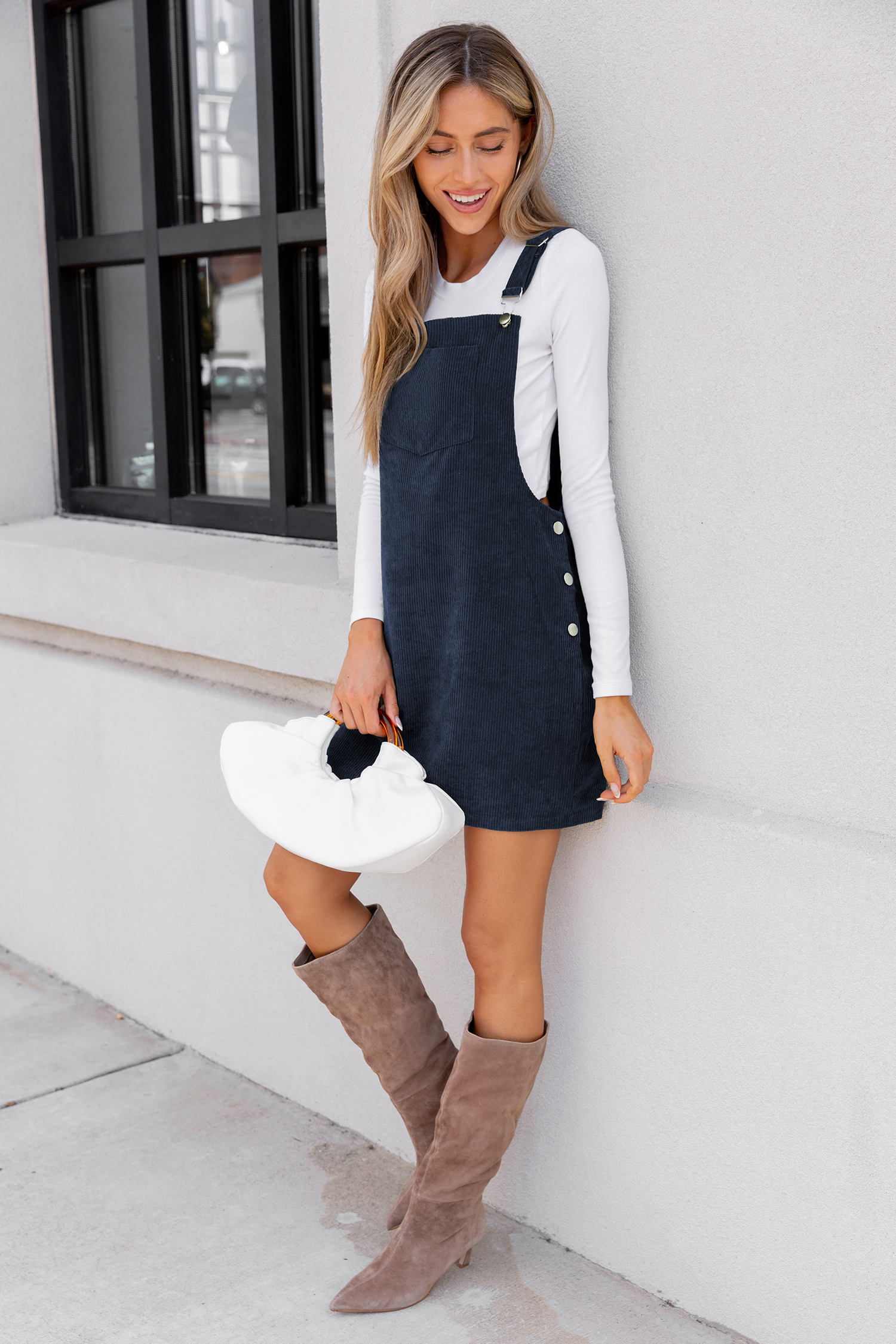 Das blaue Minikleid sorgt für einen verspielten Look! Der quadratische Ausschnitt und das ärmellose Design sorgen für einen verspielten Stil, perfekt für frische Herbstnachmittage.