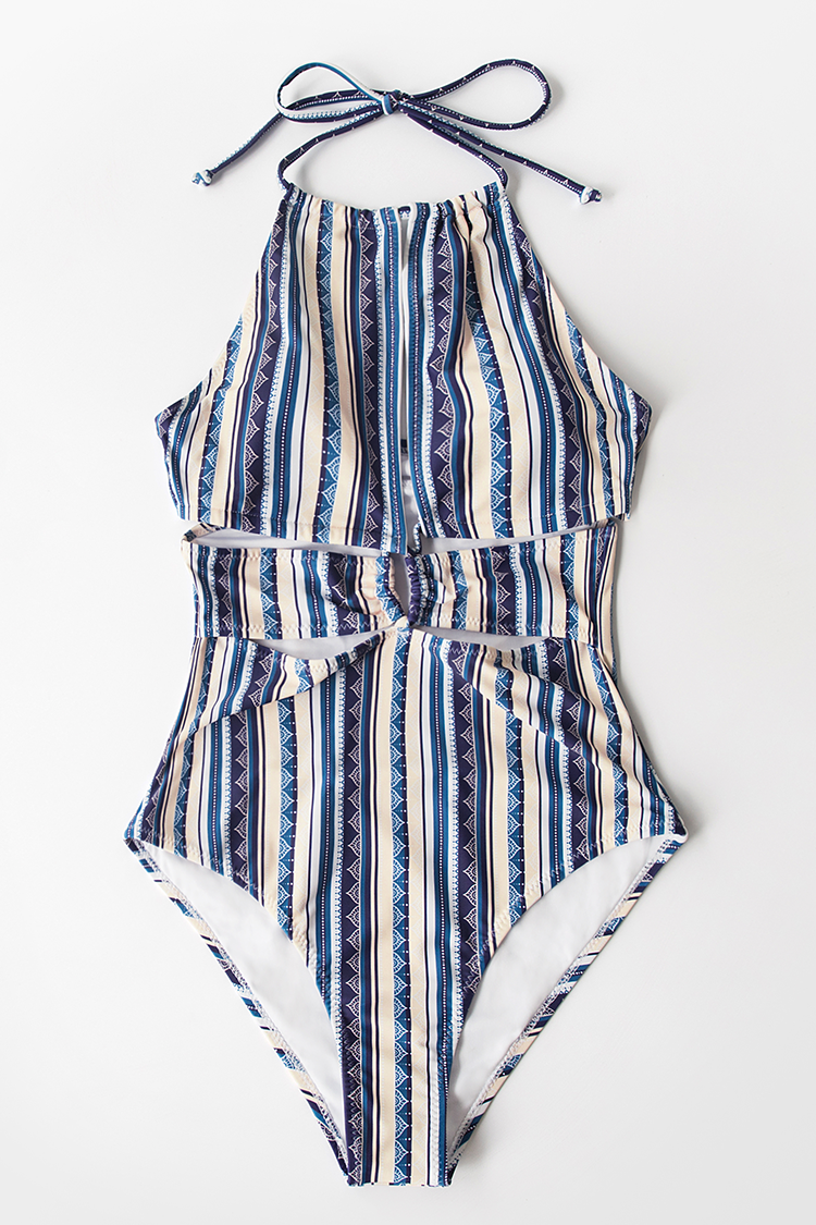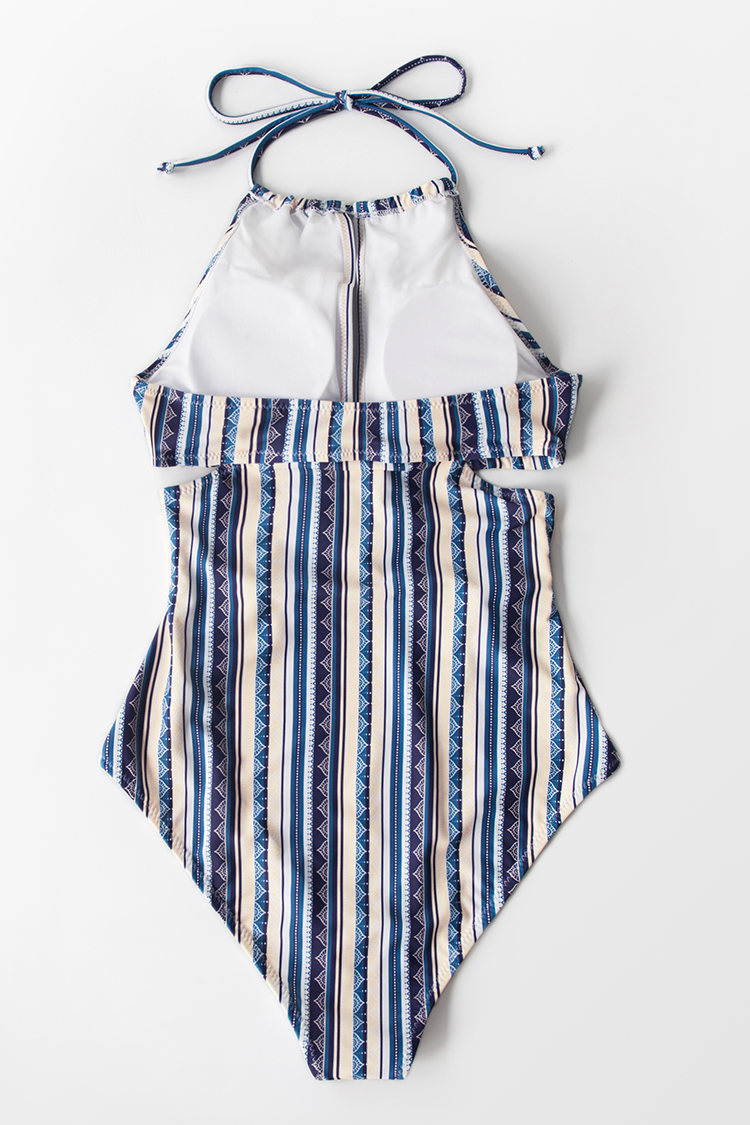 Badeanzug mit Boho-Streifen und Neckholder-Ausschnitt