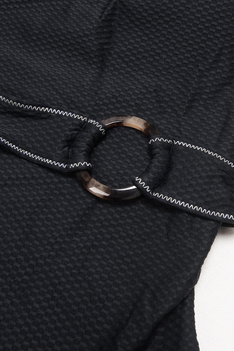 Badeanzug mit eckigem Ausschnitt und Gürtel in Schwarz