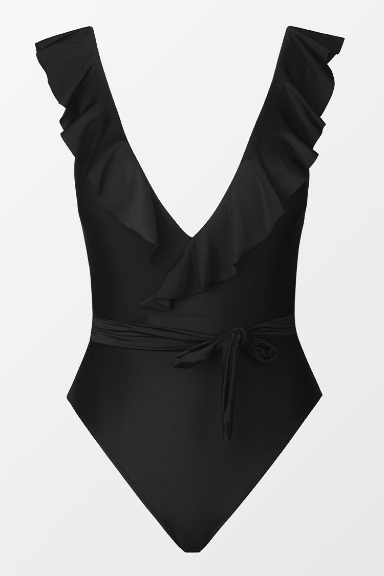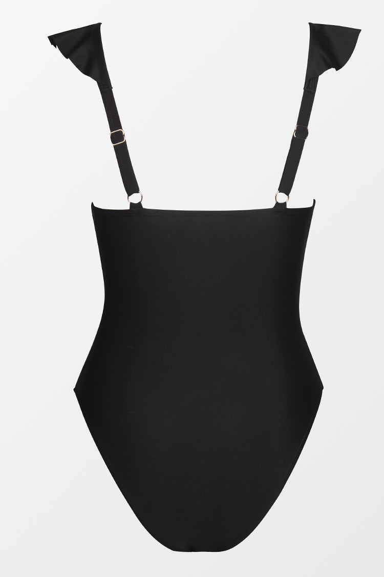 Badeanzug mit Rüschen und tiefem Ausschnitt