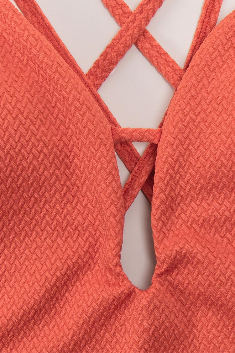 Rotes Quadratischer Ausschnitt Bikini-Set