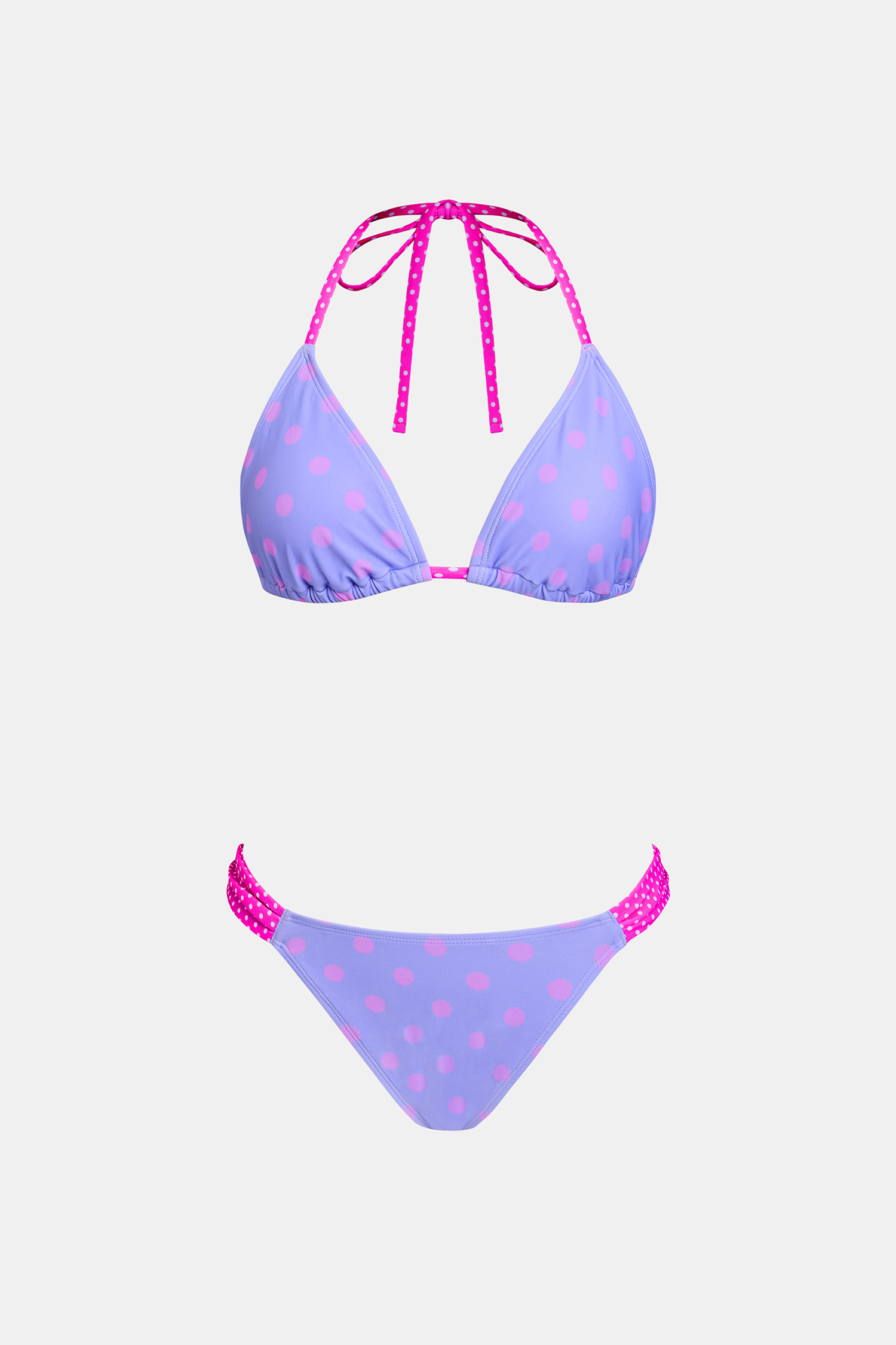 Das Bikini-Set versprüht verspieltes, inseltypisches Flair! Der rautenförmige Ausschnitt mit Neckholder-Trägern bietet leichten Halt für die Brust, während der tiefe Bund und der hohe Beinausschnitt für ein lässiges, verspieltes und abenteuerlustiges Gefühl sorgen.