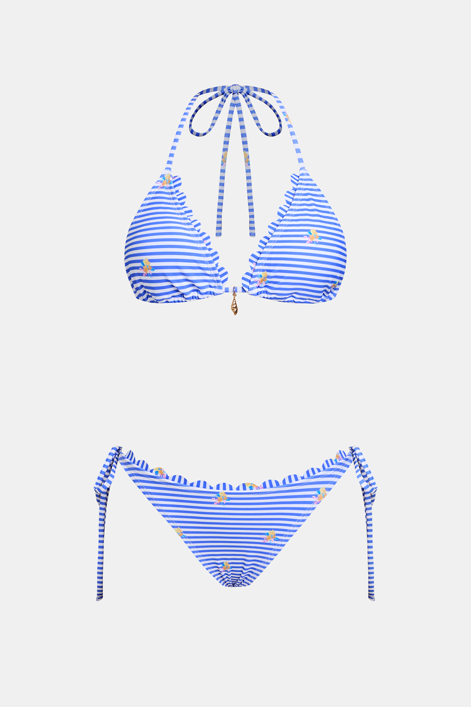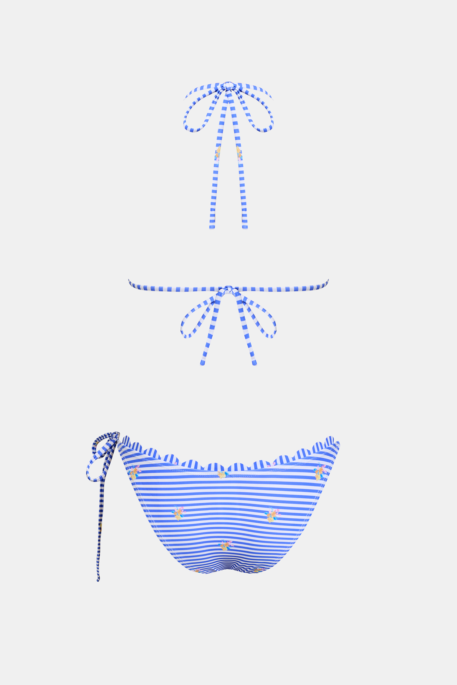 Das Bikini-Set bringt unbeschwerte Insel-Energie! Der rautenförmige Ausschnitt mit Neckholder-Trägern bietet leichten Halt für die Brust, während der tiefe Bund und der hohe Beinausschnitt für einen verspielten, fröhlichen und angenehmen Tragekomfort sorgen.