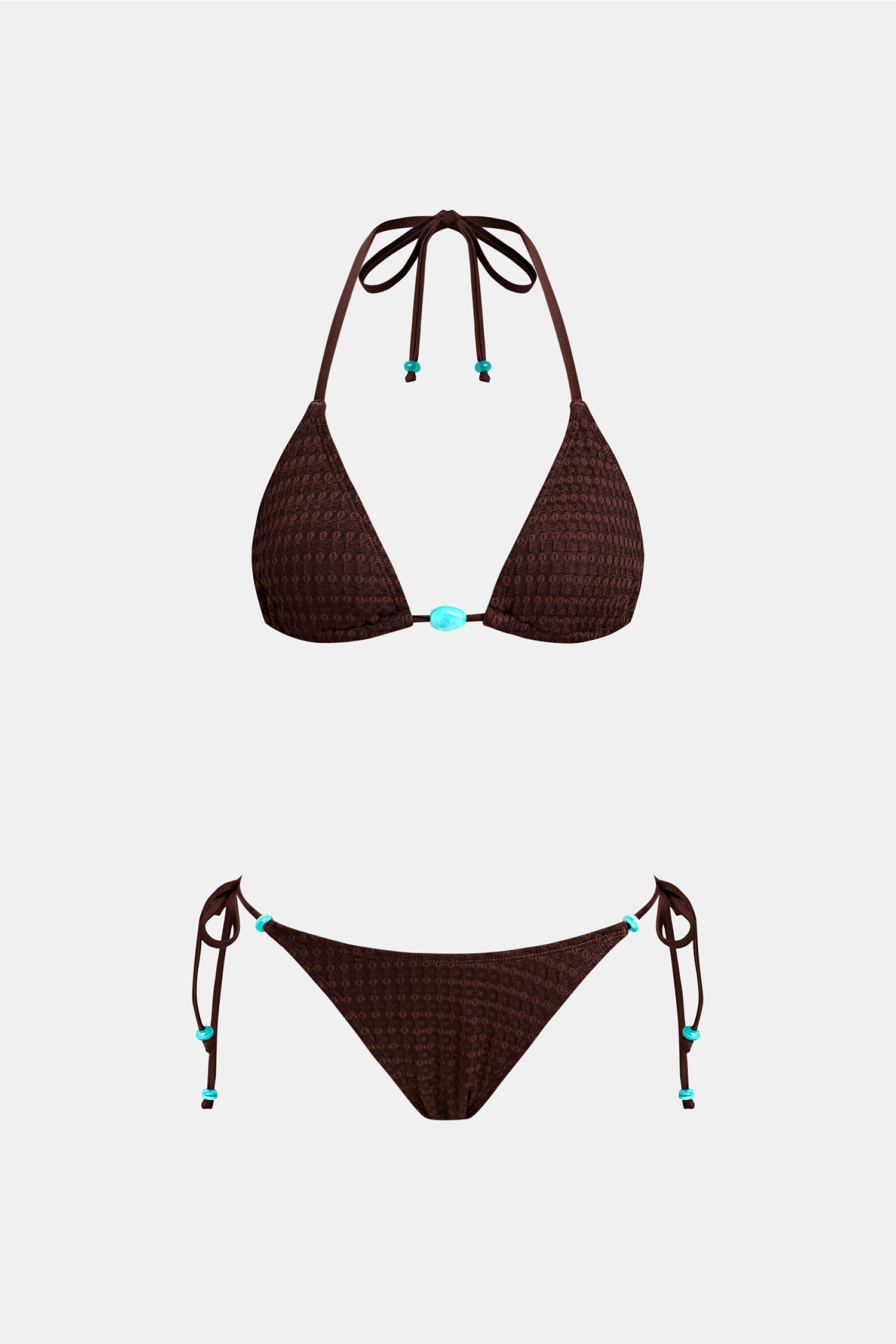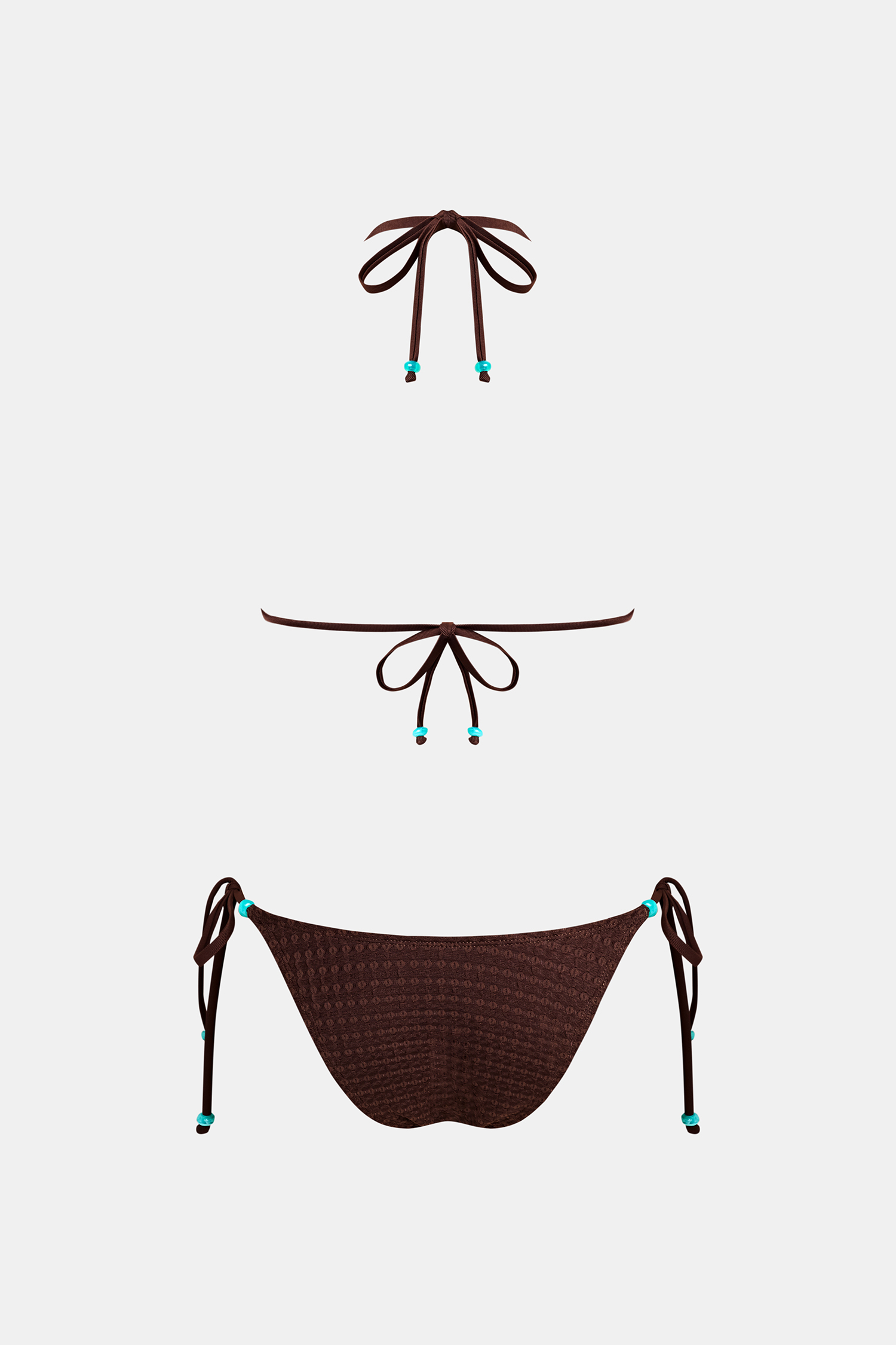 Das Bikini-Set sorgt für unbeschwerte Vibes! Der Diamantausschnitt mit Neckholder-Trägern bietet leichten Halt für die Brust, während der tiefe Bund und der hohe Beinausschnitt eine schmeichelhafte, verspielte Silhouette kreieren.