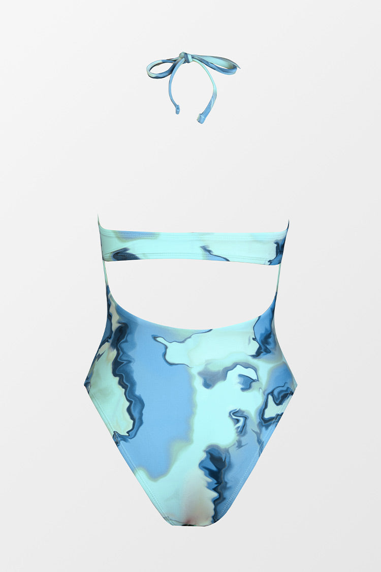 Bandeau-Badeanzug mit Cut out und Abstraktem Muster