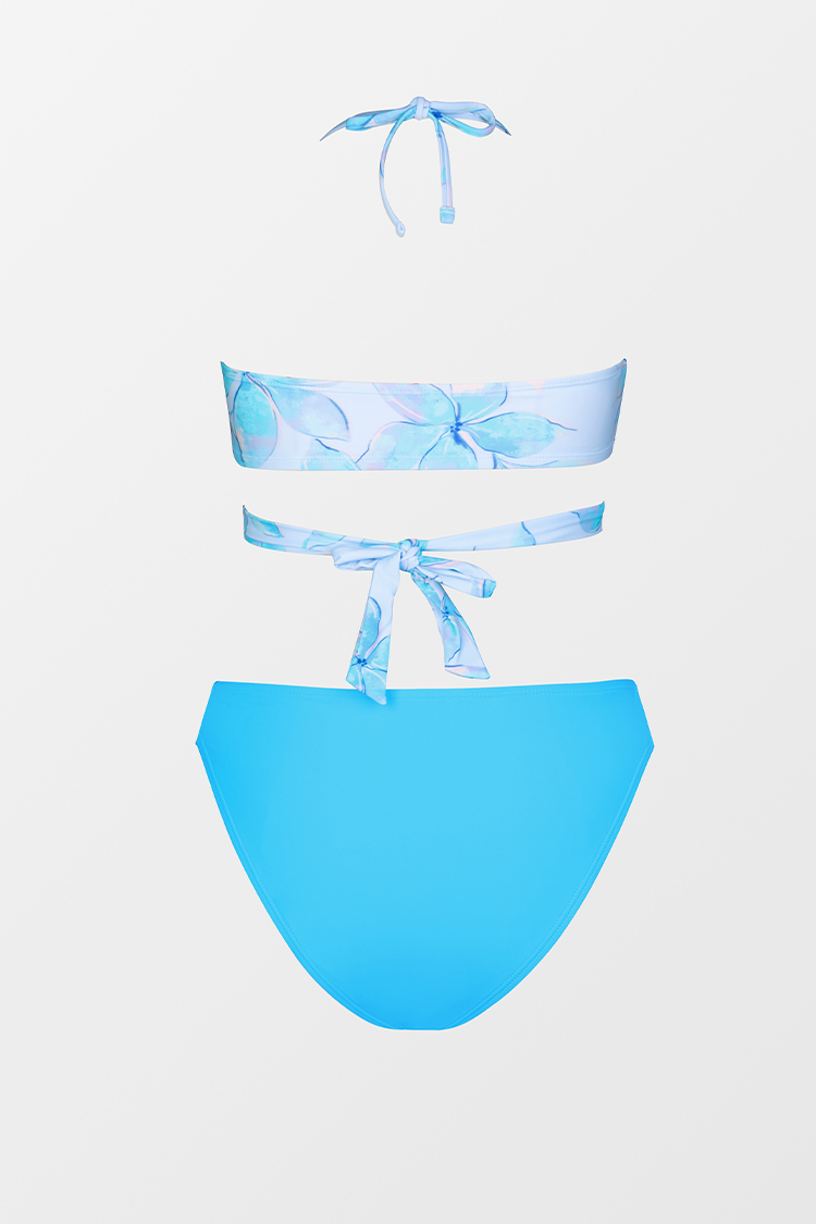 Knoten vorne Bandeau & Ultra Cheeky Hipster Bikini Set mit Blumendruck