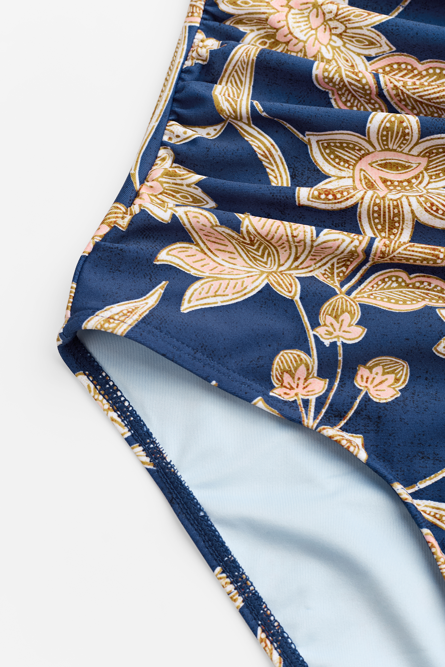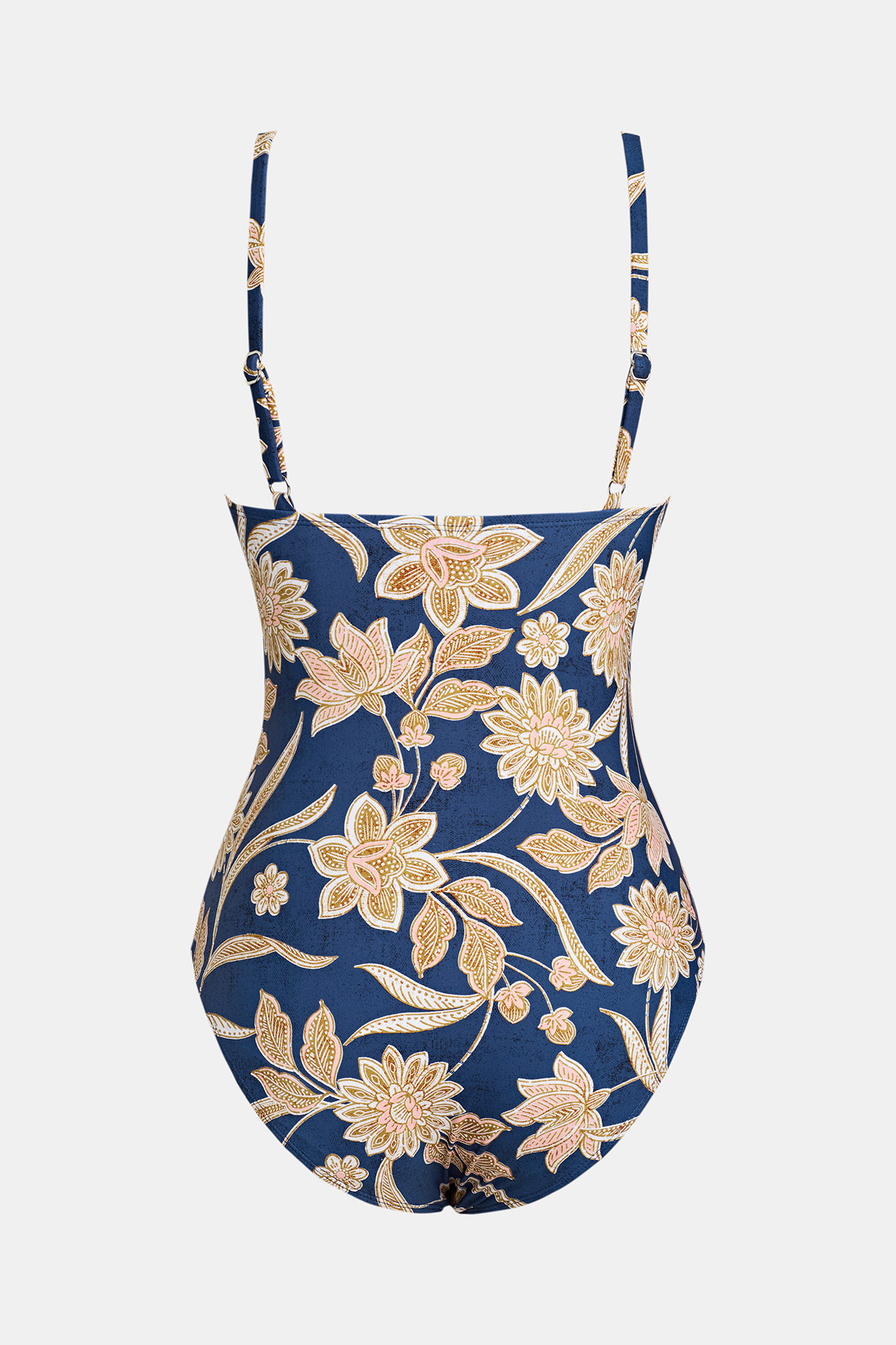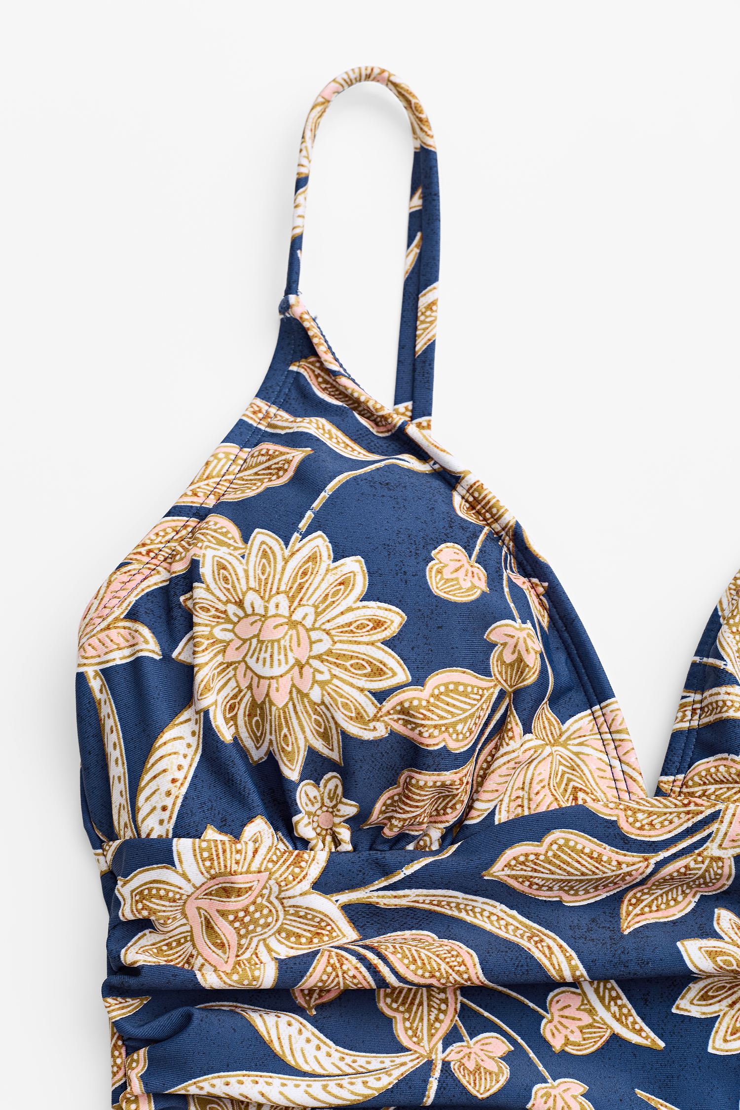 Seien Sie der heißeste Typ am Strand in diesem einteiligen Badeanzug mit Paisley-Print, V-Ausschnitt, gerafftem Oberteil und verstellbaren Cami-Trägern.