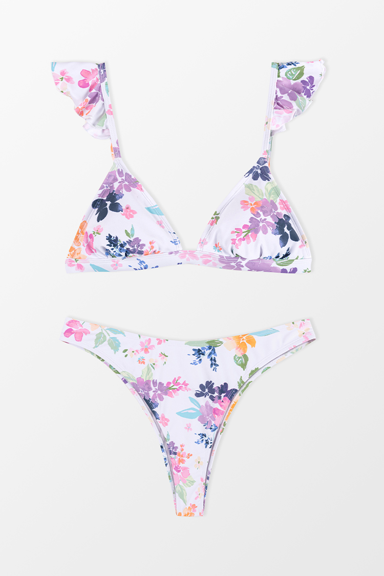Triangel mit Rüschenschleife & Cheeky Hipster Bikini Set mit Allover-Blumendruck