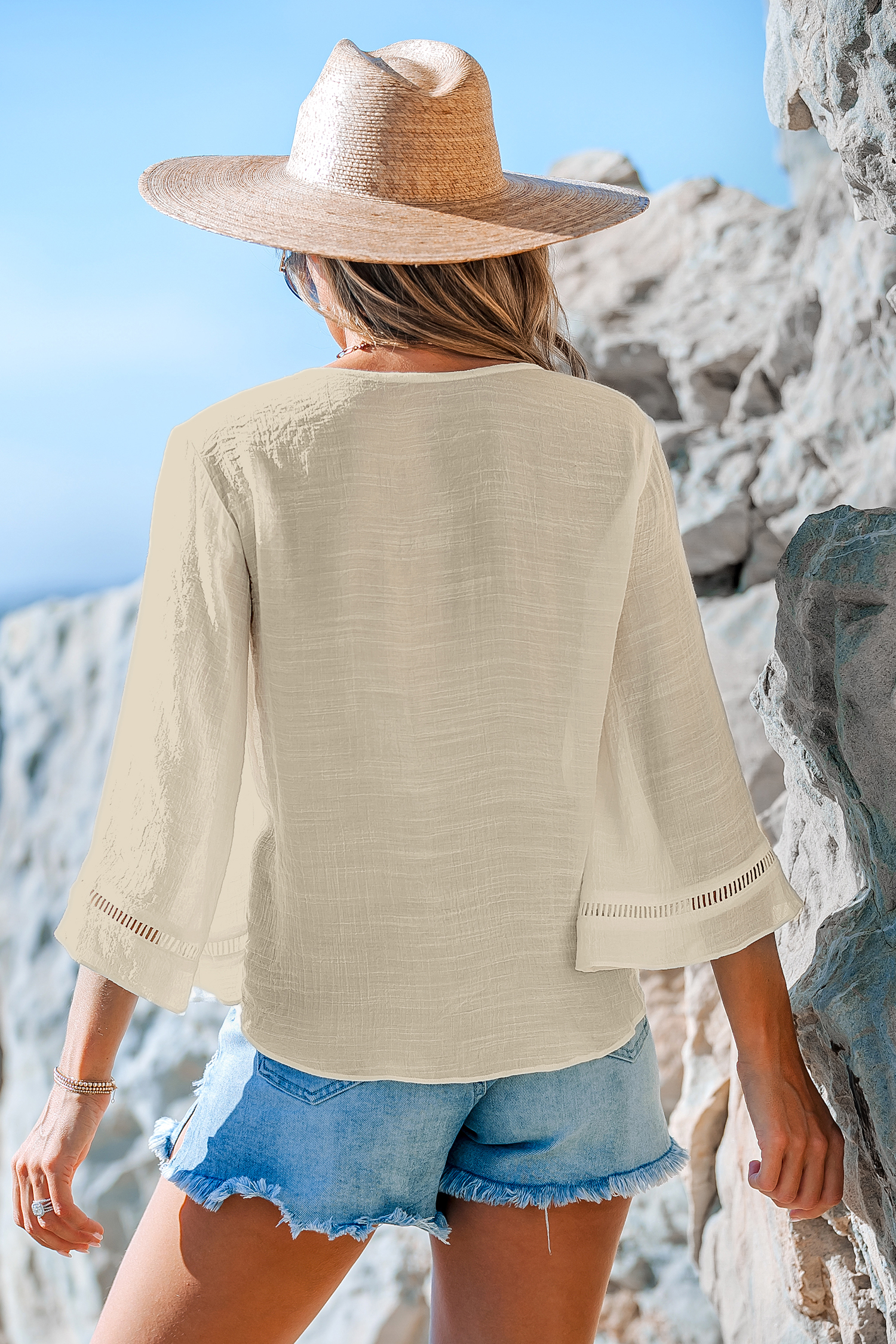 Beige Cover-Up-Top mit ausgestellten Ärmeln und gebundener Taille