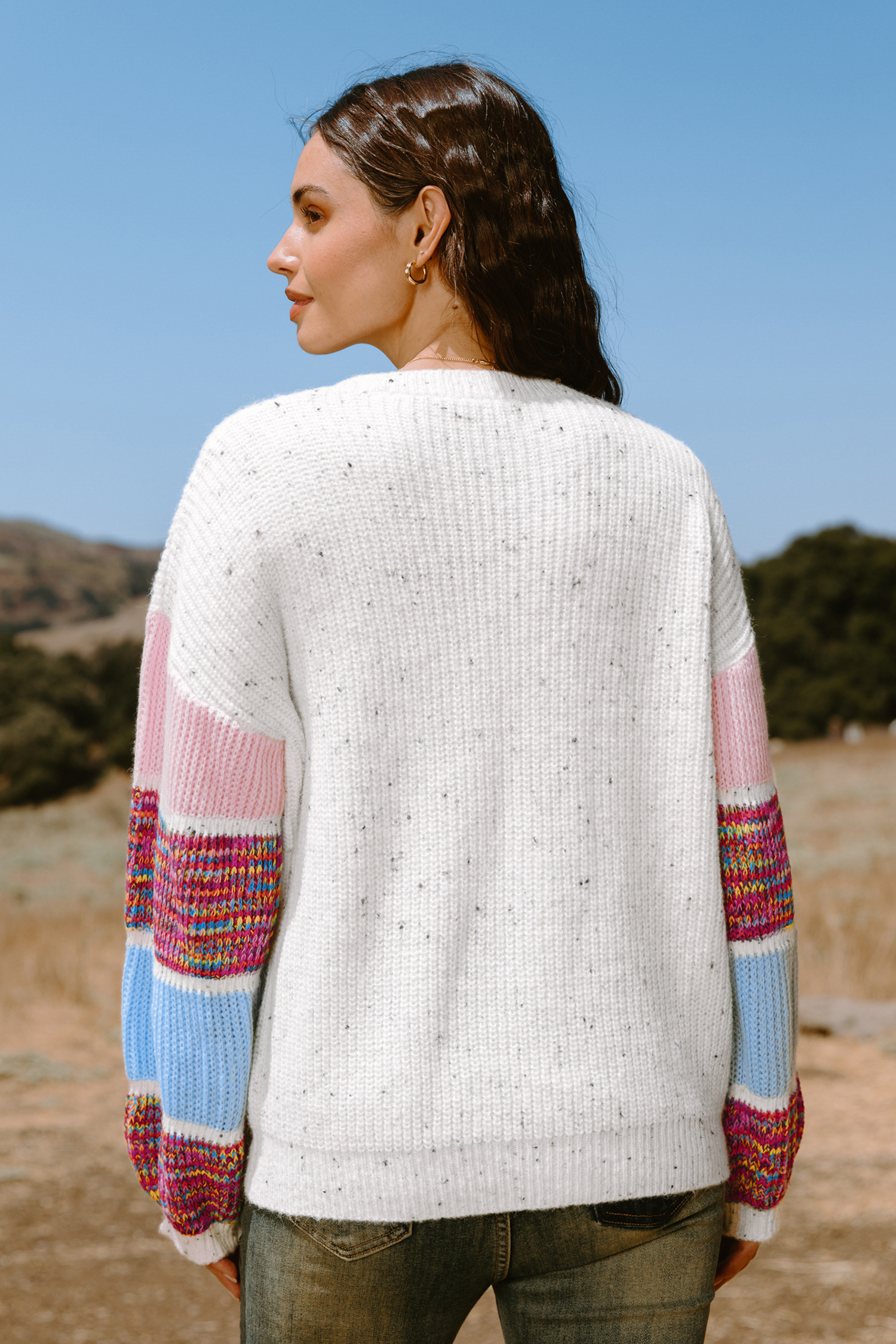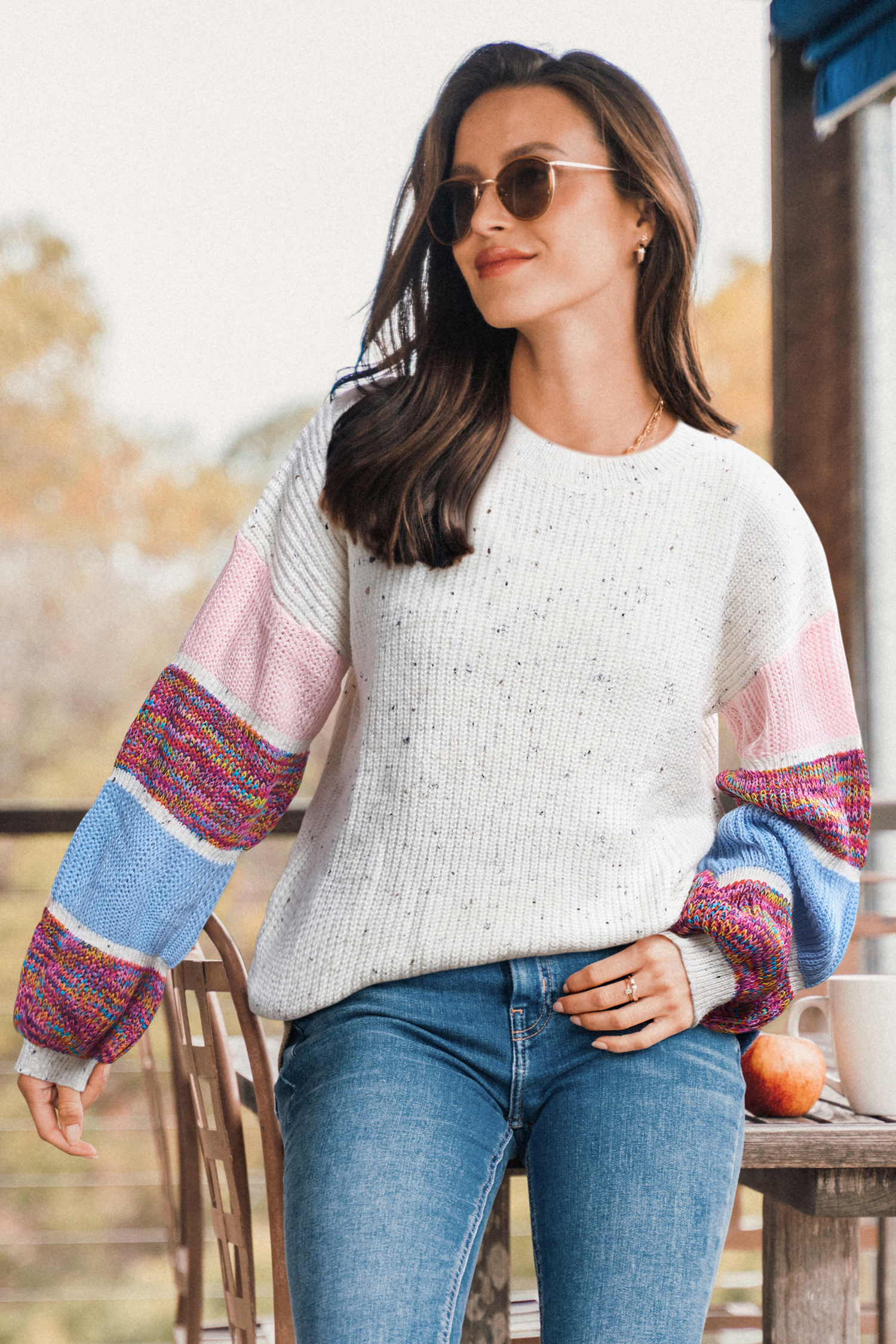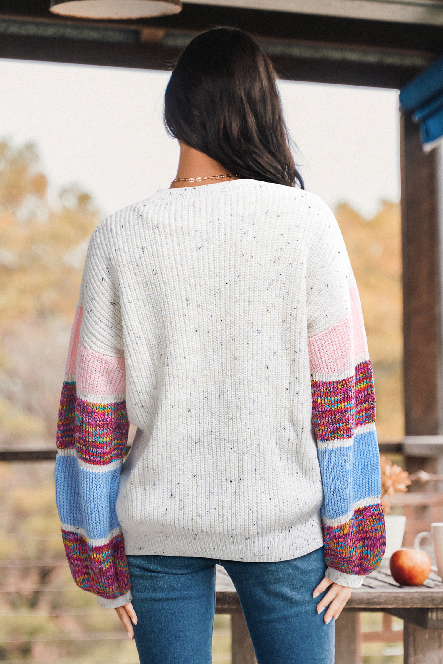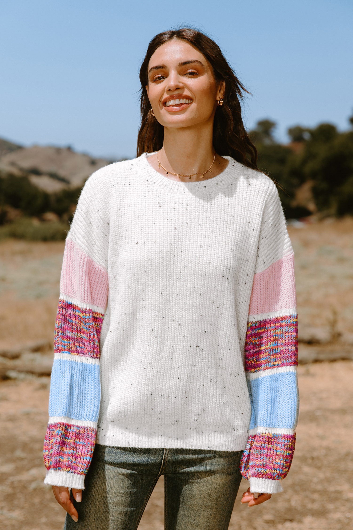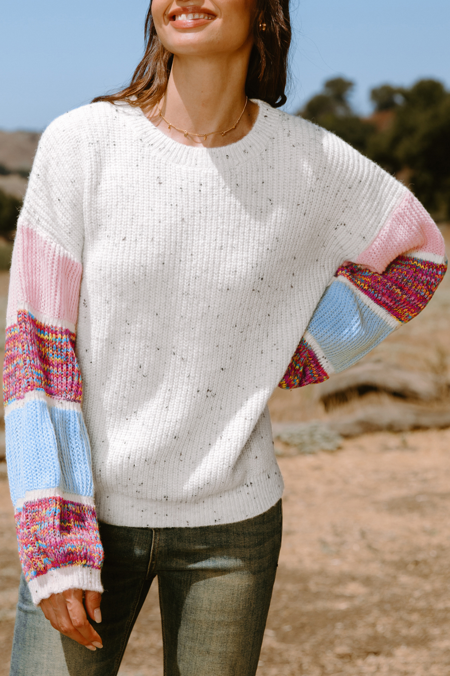 Beige Pullover mit Rundhalsausschnitt und Colorblock-Ärmeln