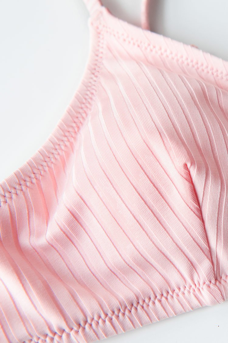 Bikini-Oberteil mit Riemchenrücken in Rosa