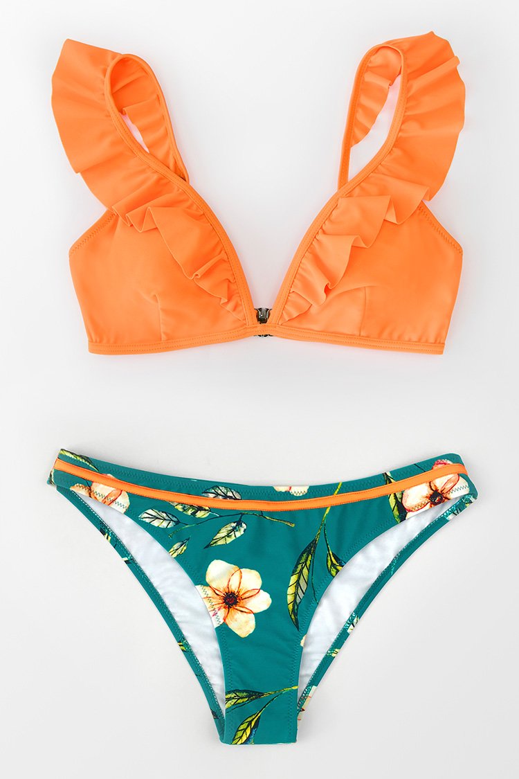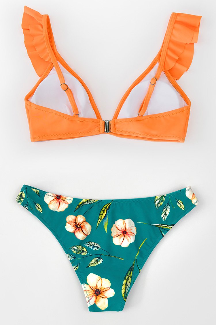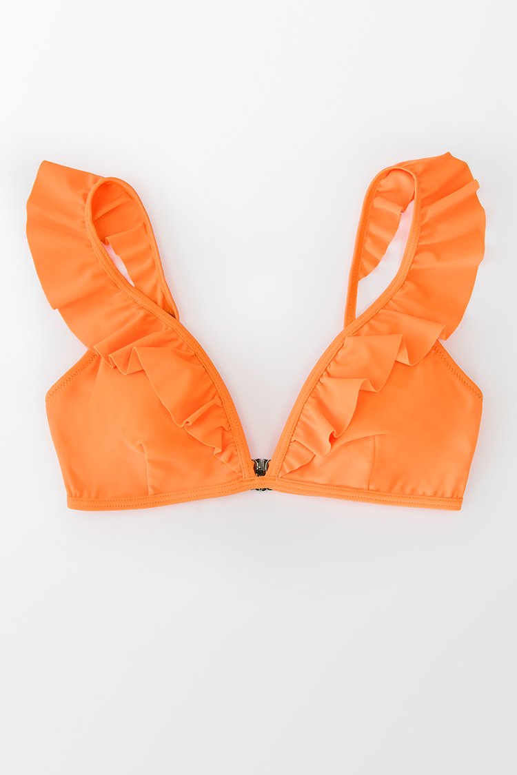 HomeBikini-Oberteil mit Rüschen in Neonorange
