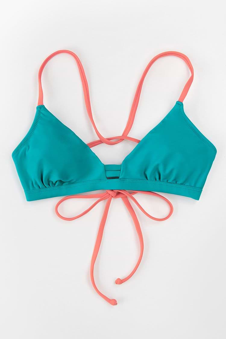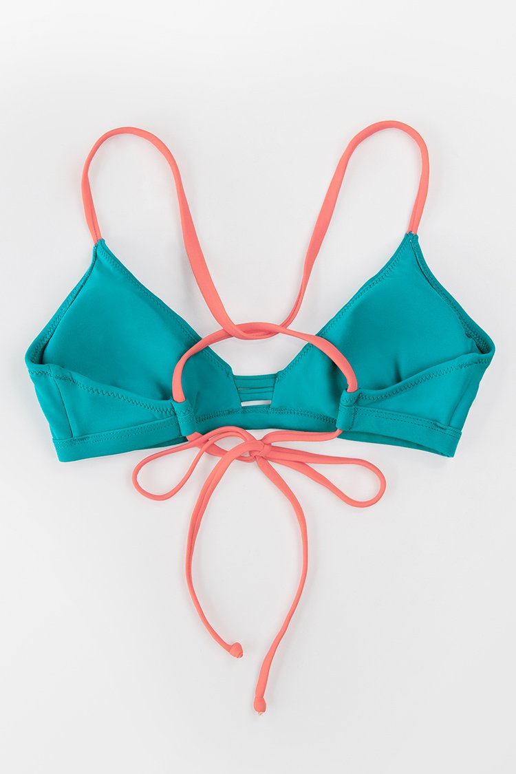 Bikini-Oberteil mit Schnürung und Riemchen in Blaugrün