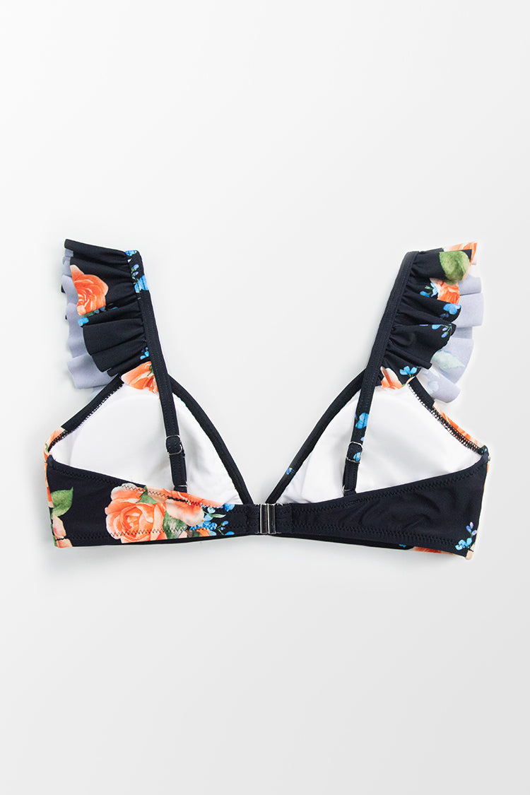Bikini-Oberteil mit V-Ausschnitt und Rüschen