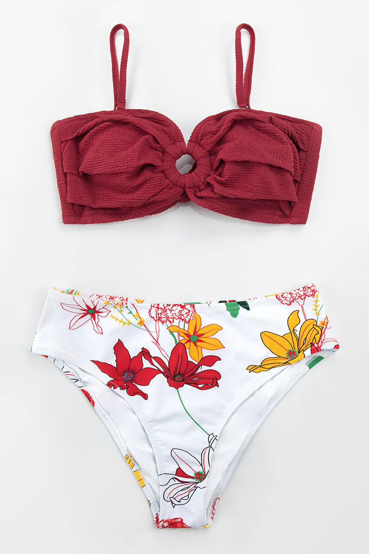 HomeBikini-Set mit O-Ring und High Waist in Rot