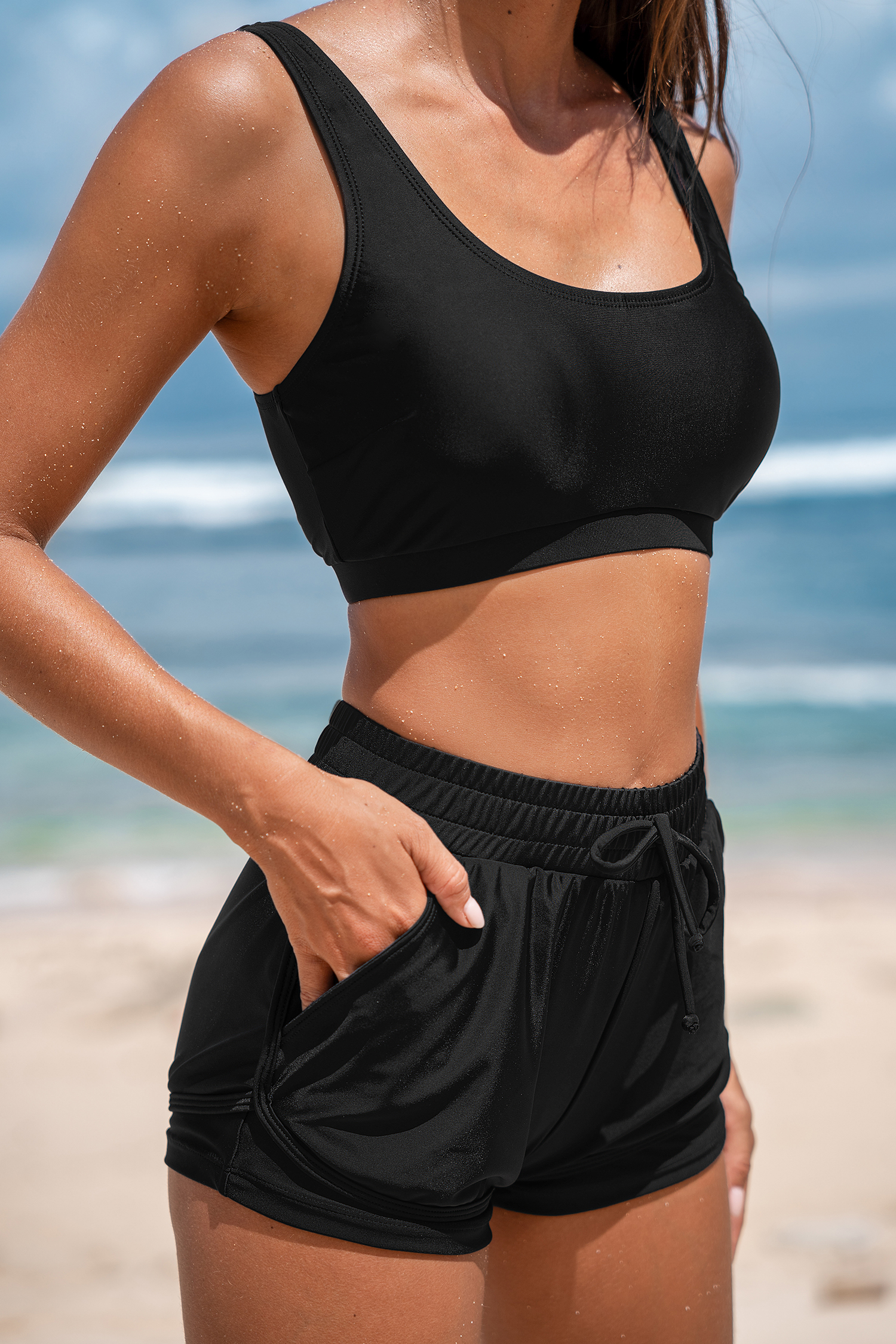 Schwarzes Bikini-Bralette & kurze Boyshorts