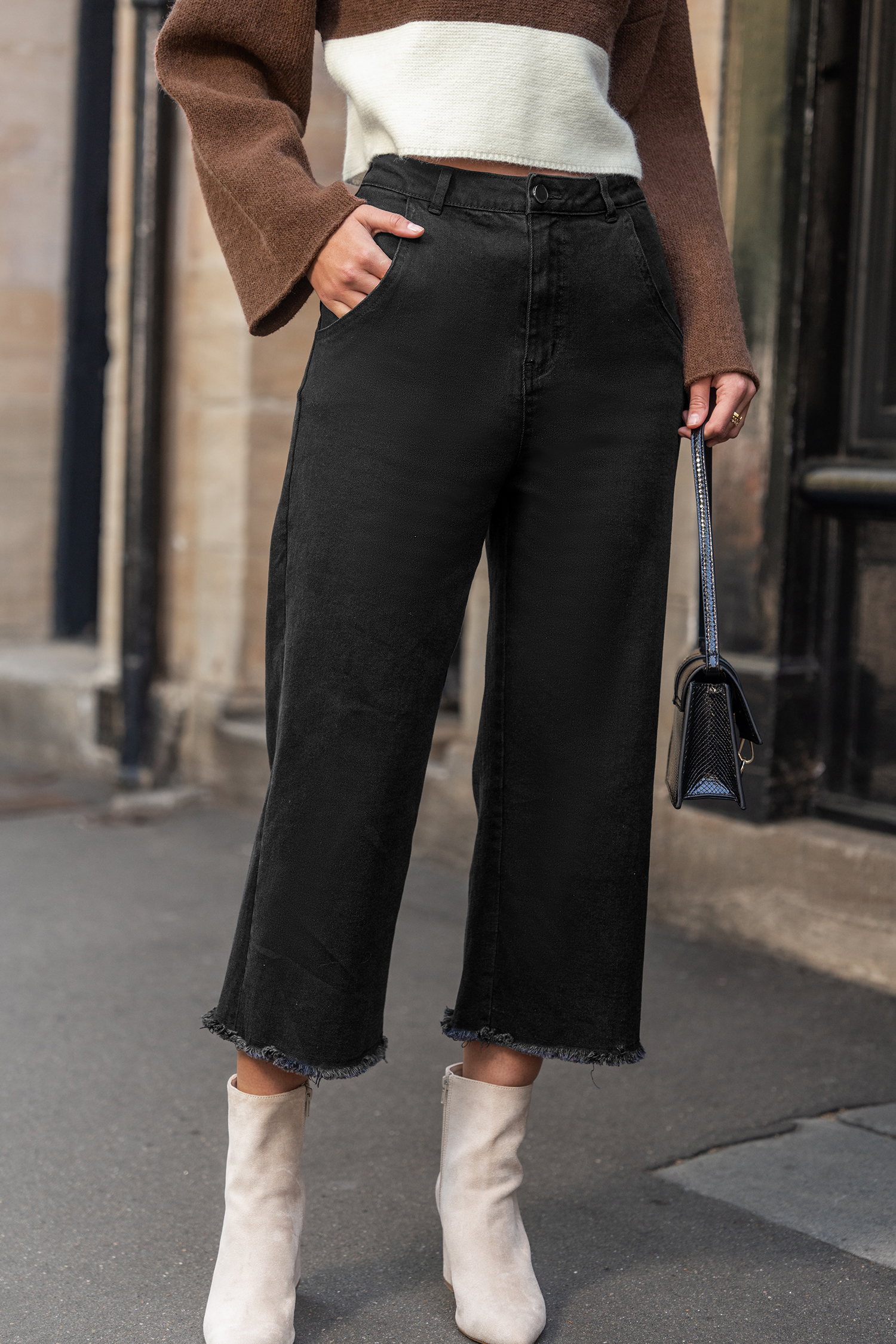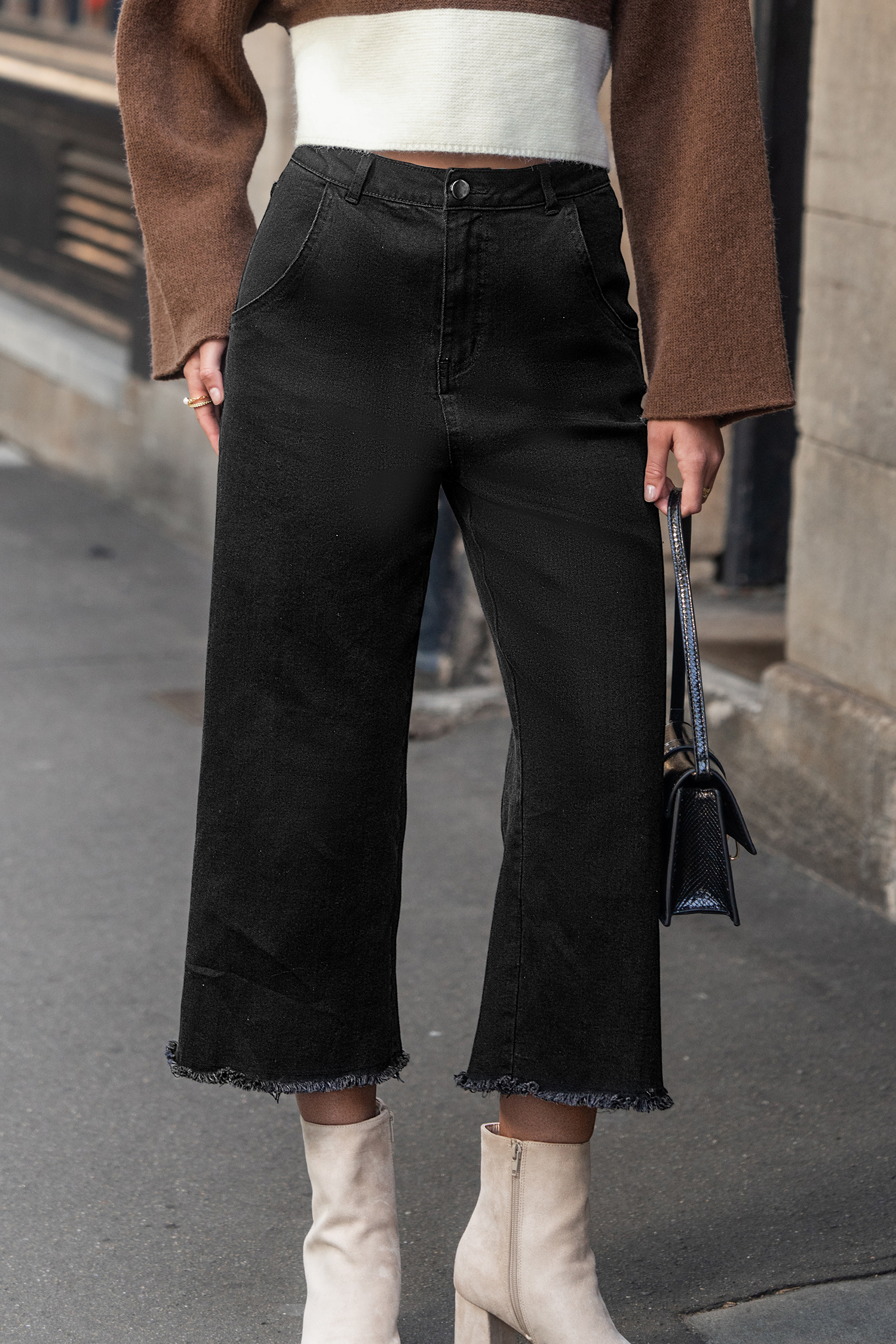 Schwarze Denim-Jeans mit geradem Bein und ausgefranstem Saum