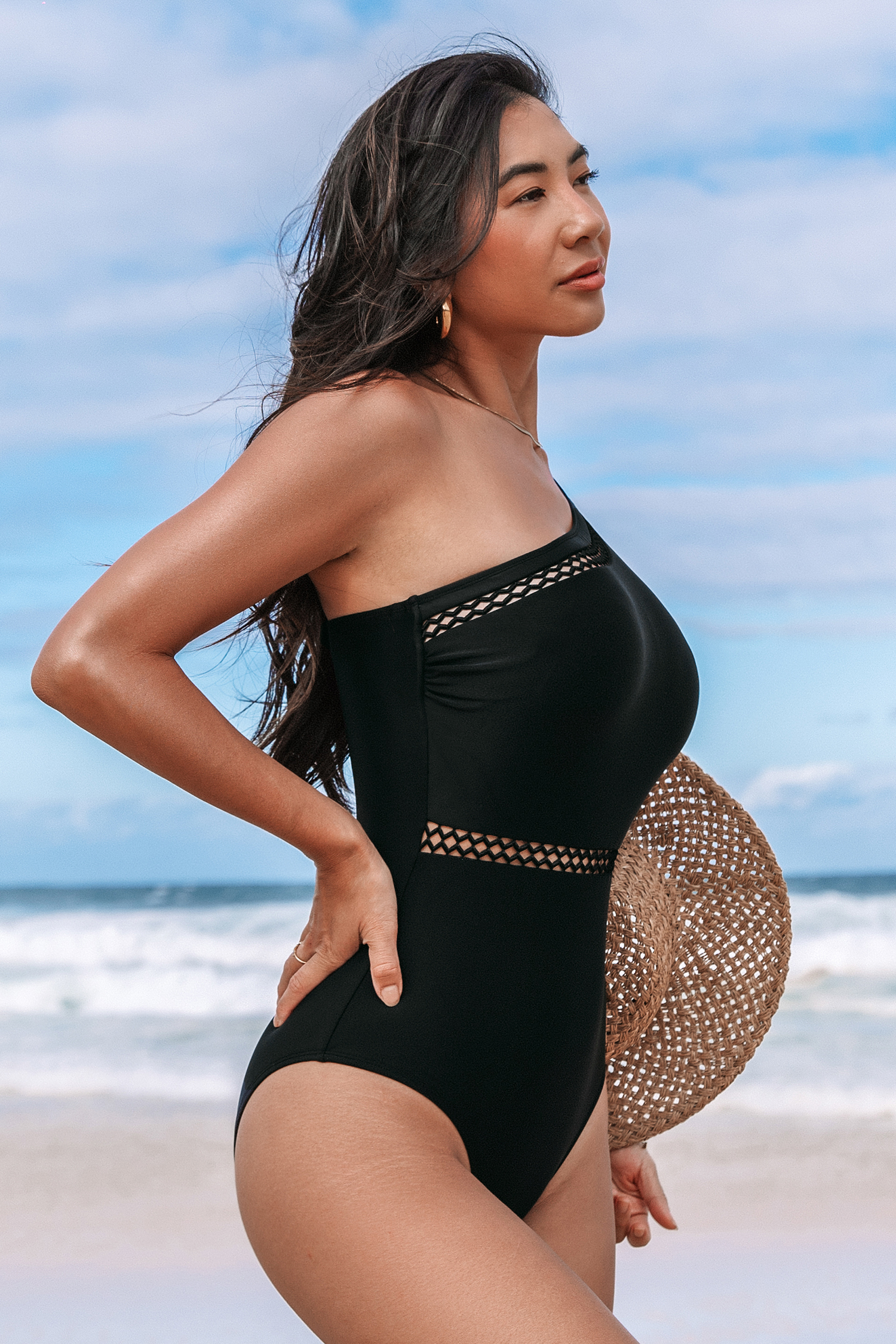 Schwarzer Cutout One-Shoulder-Badeanzug