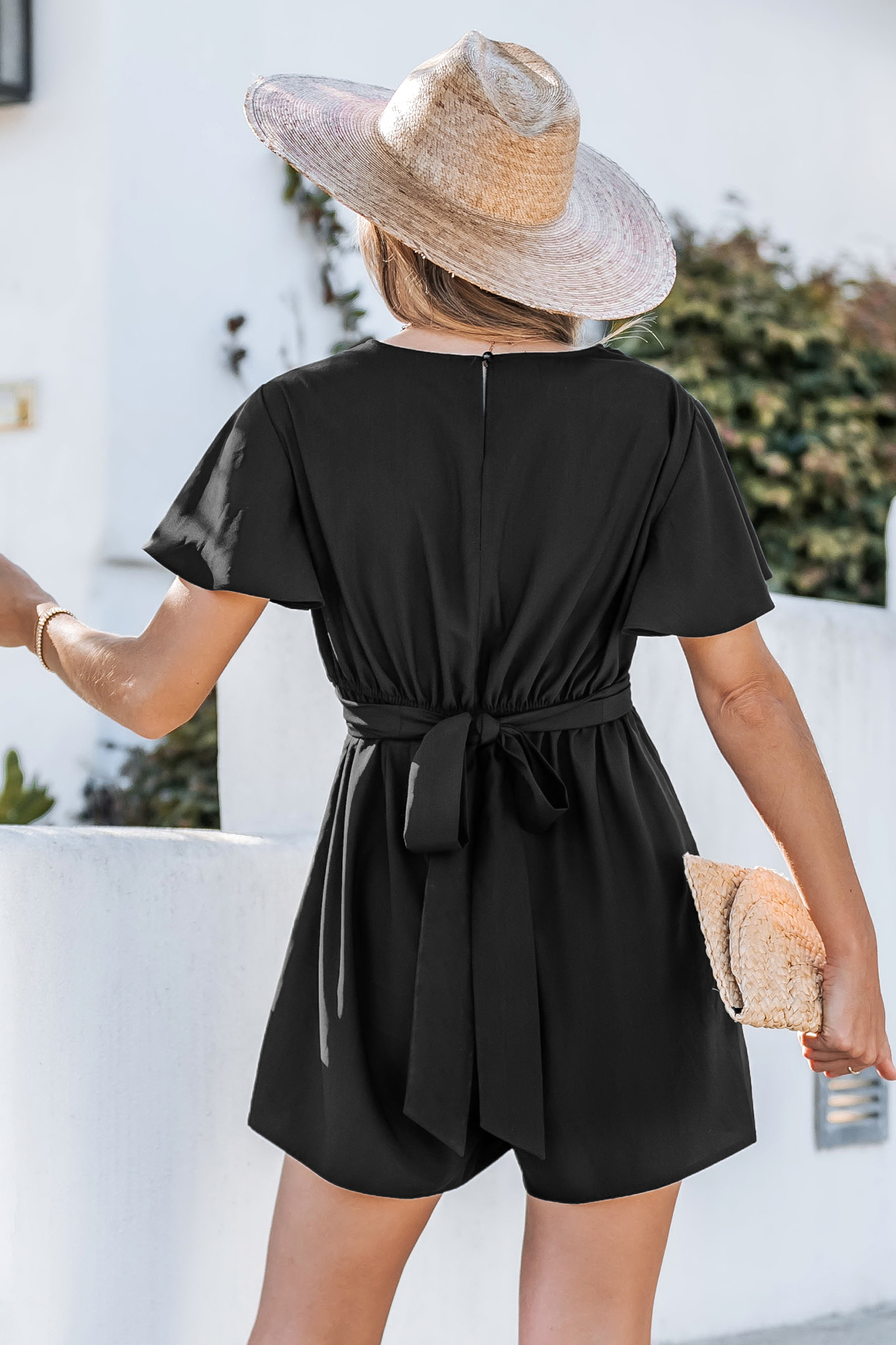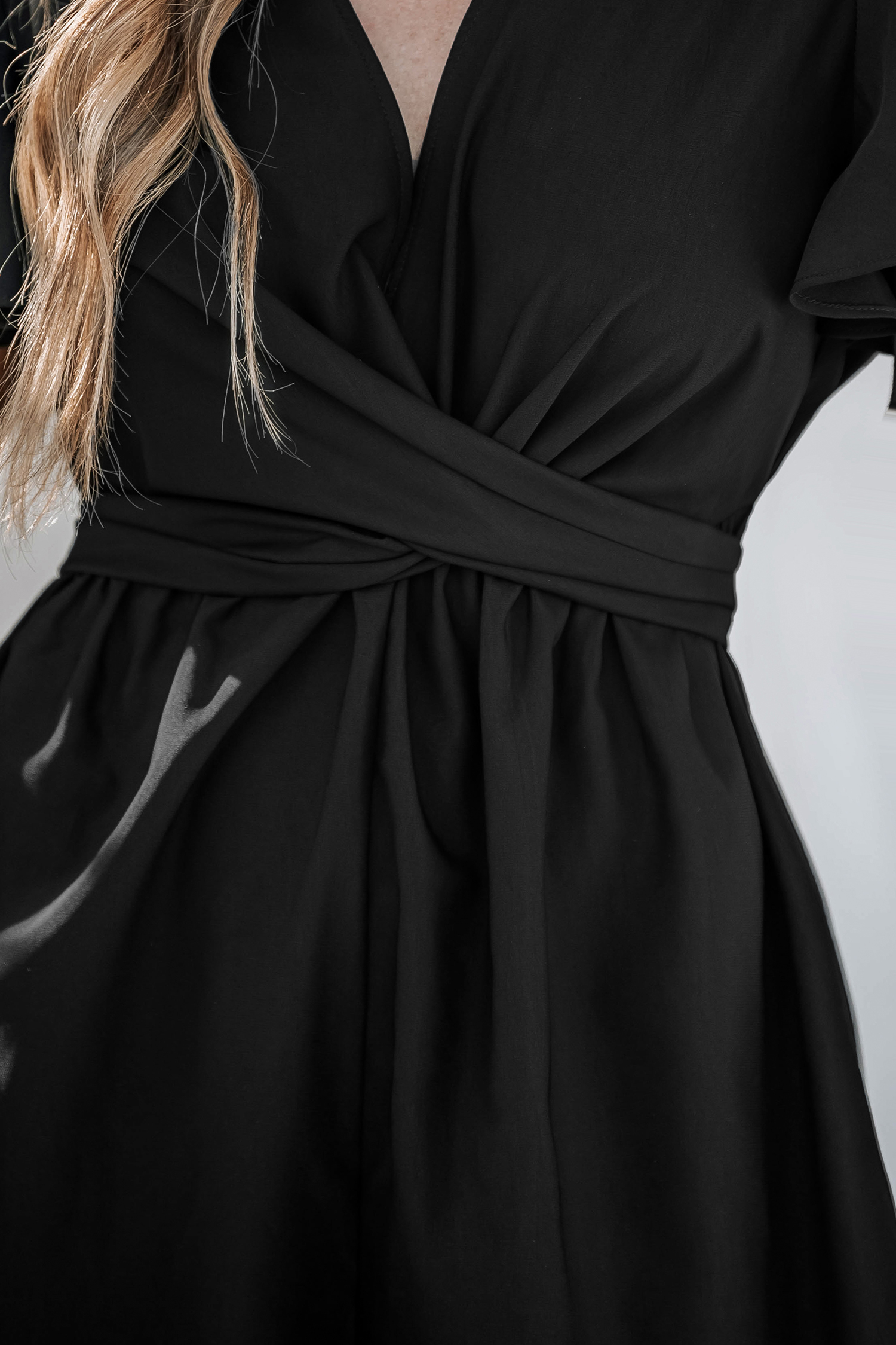 Schwarzer Strampler mit weitem Bein und Flatterärmeln
