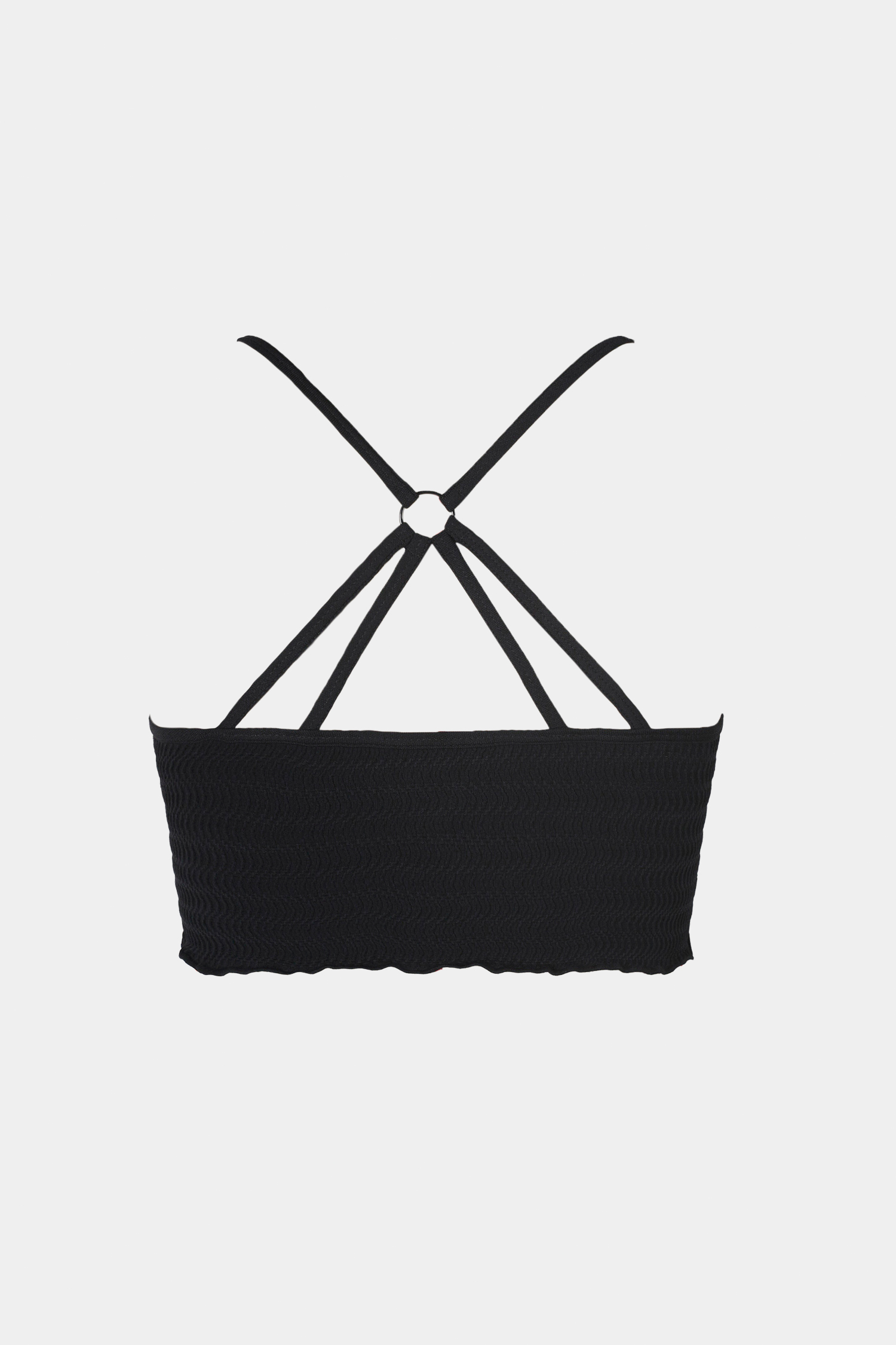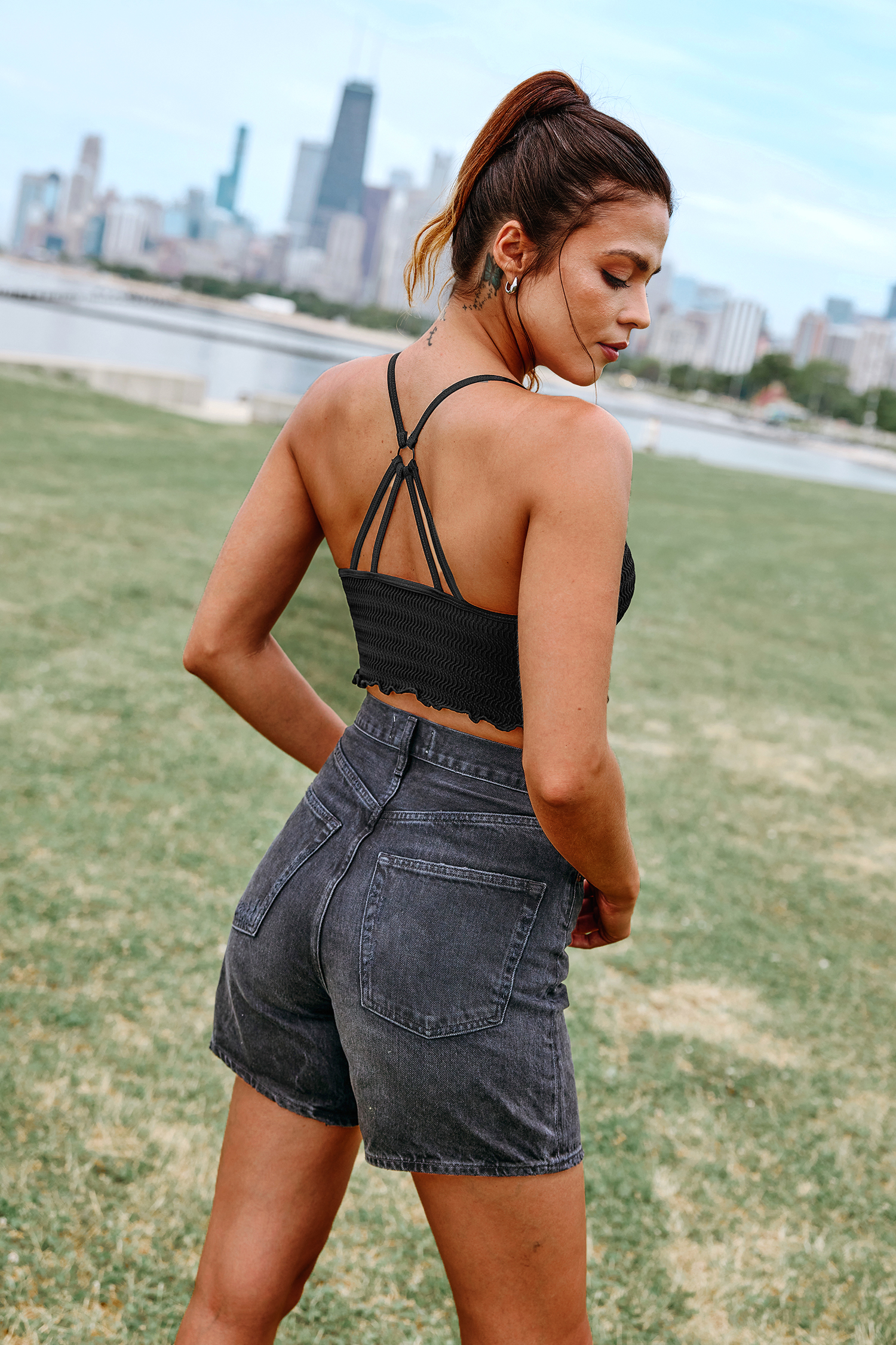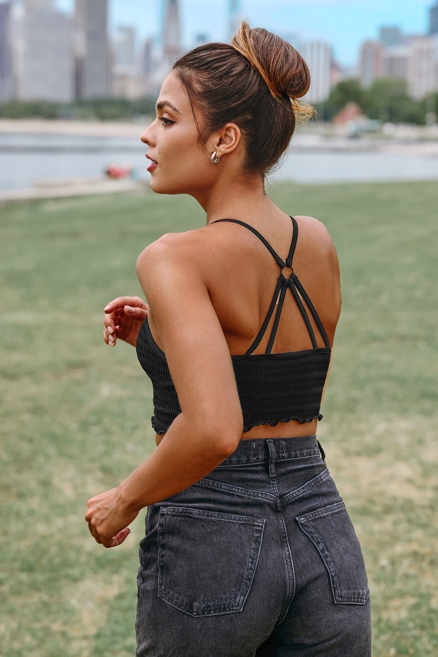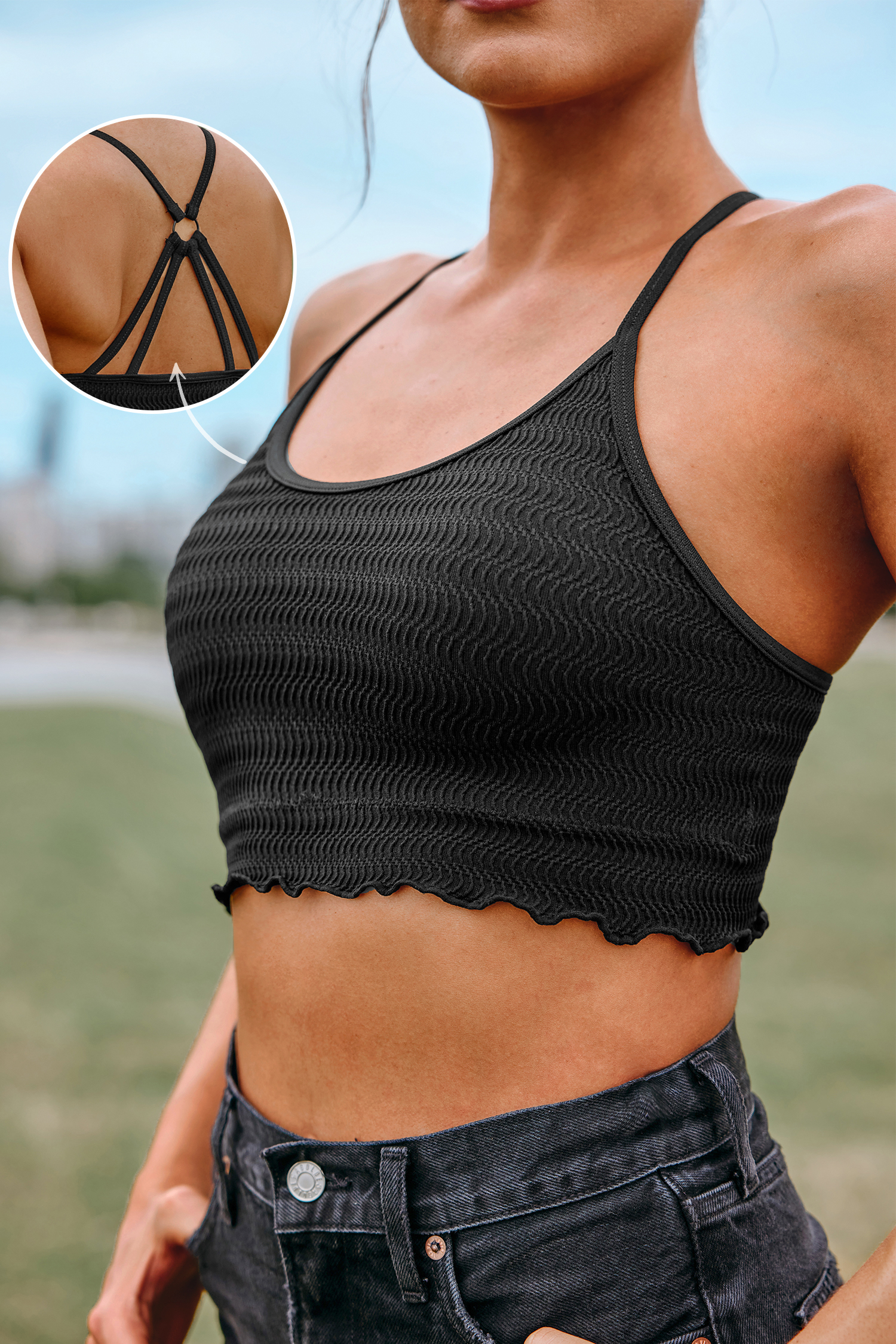 Nahtlos Schwarzes Crop-Top mit Rundhalsausschnitt und Salatsaum