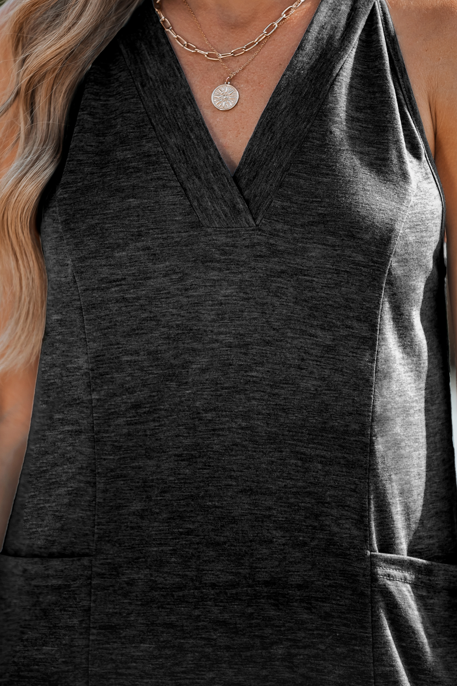 Schwarzes ärmelloses Jerseykleid mit aufgesetzten Taschen