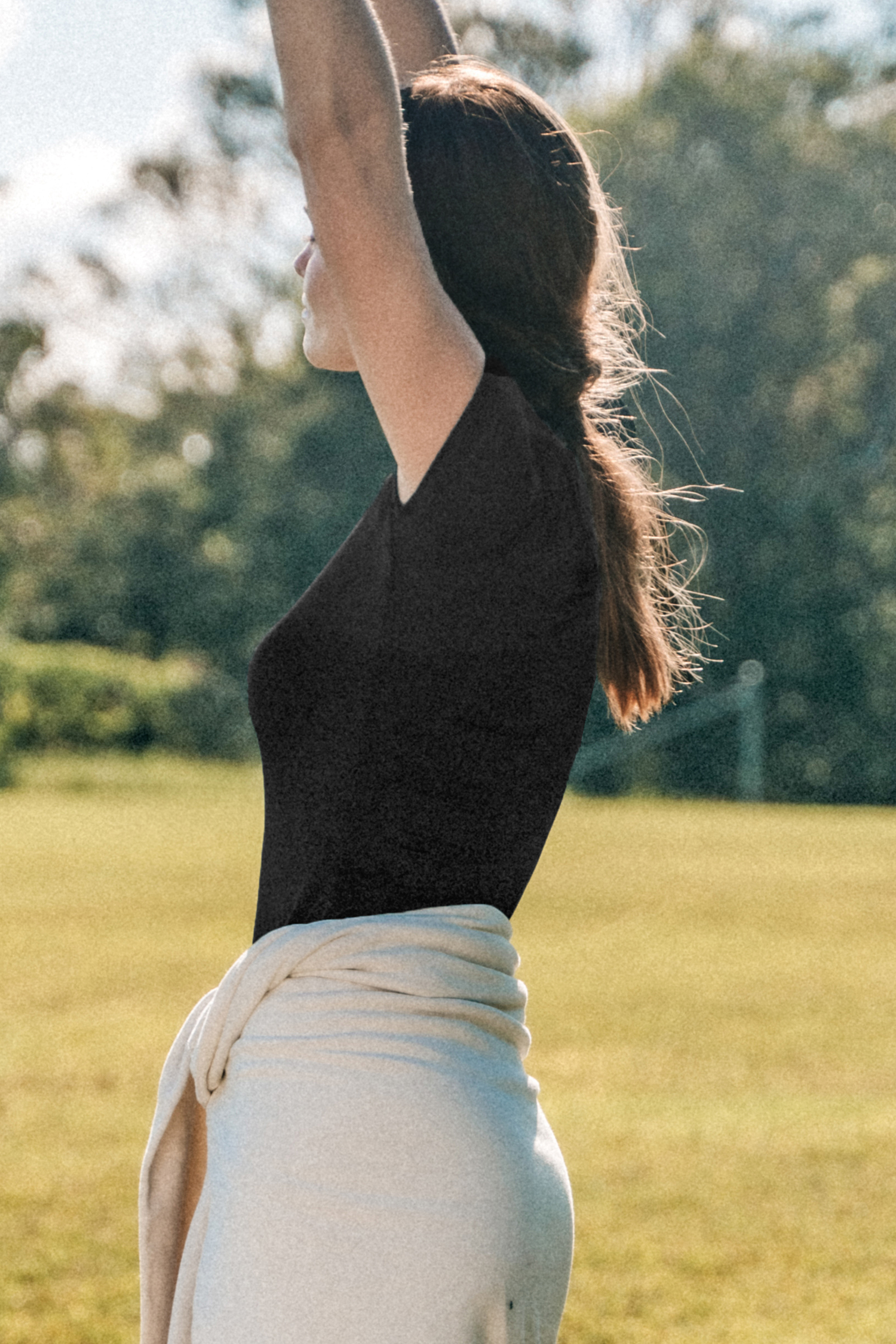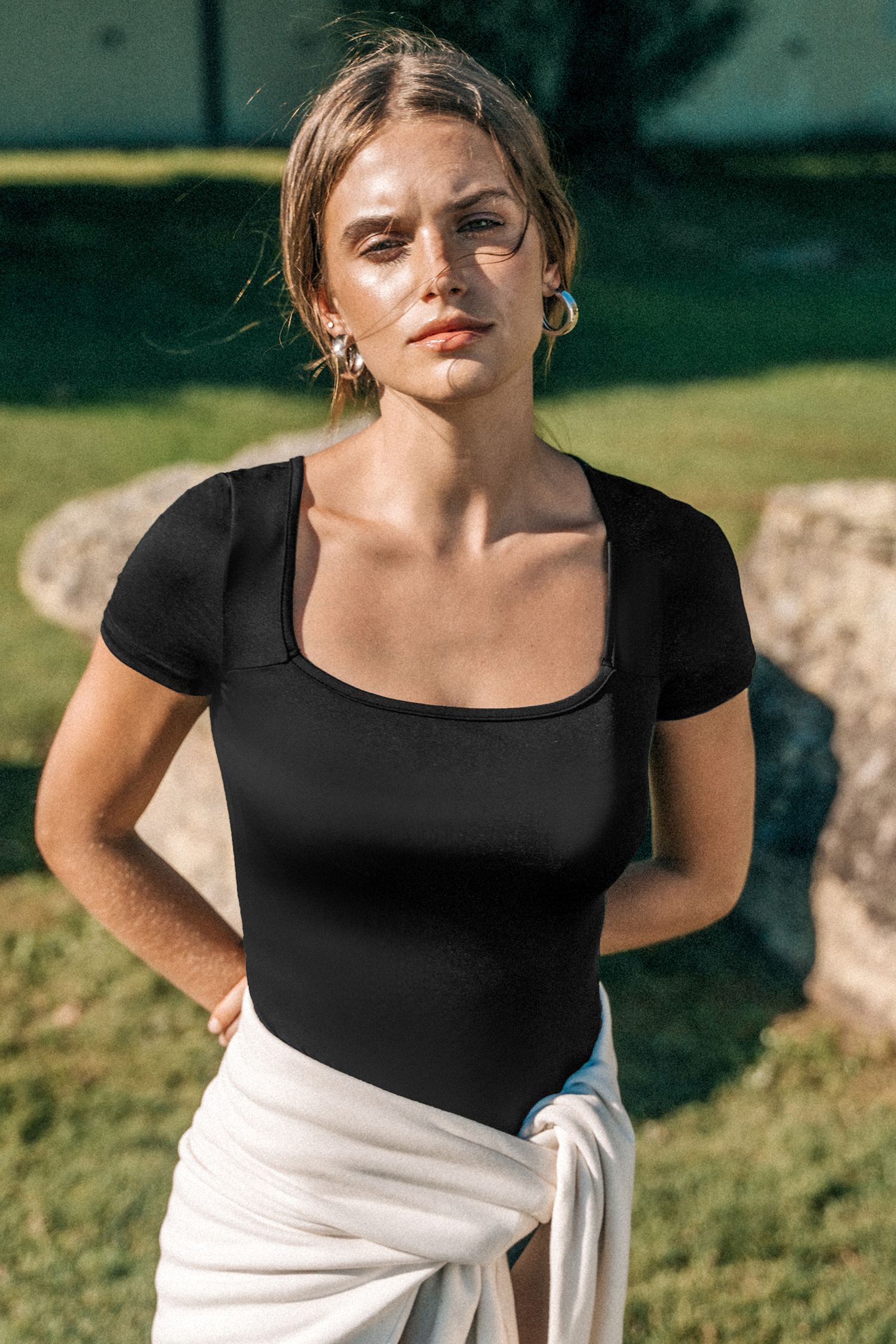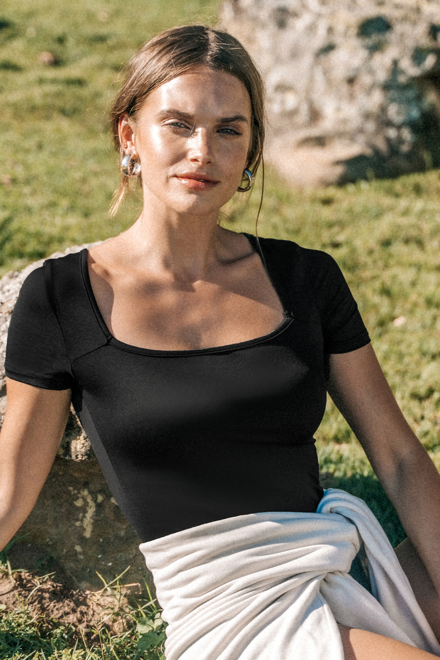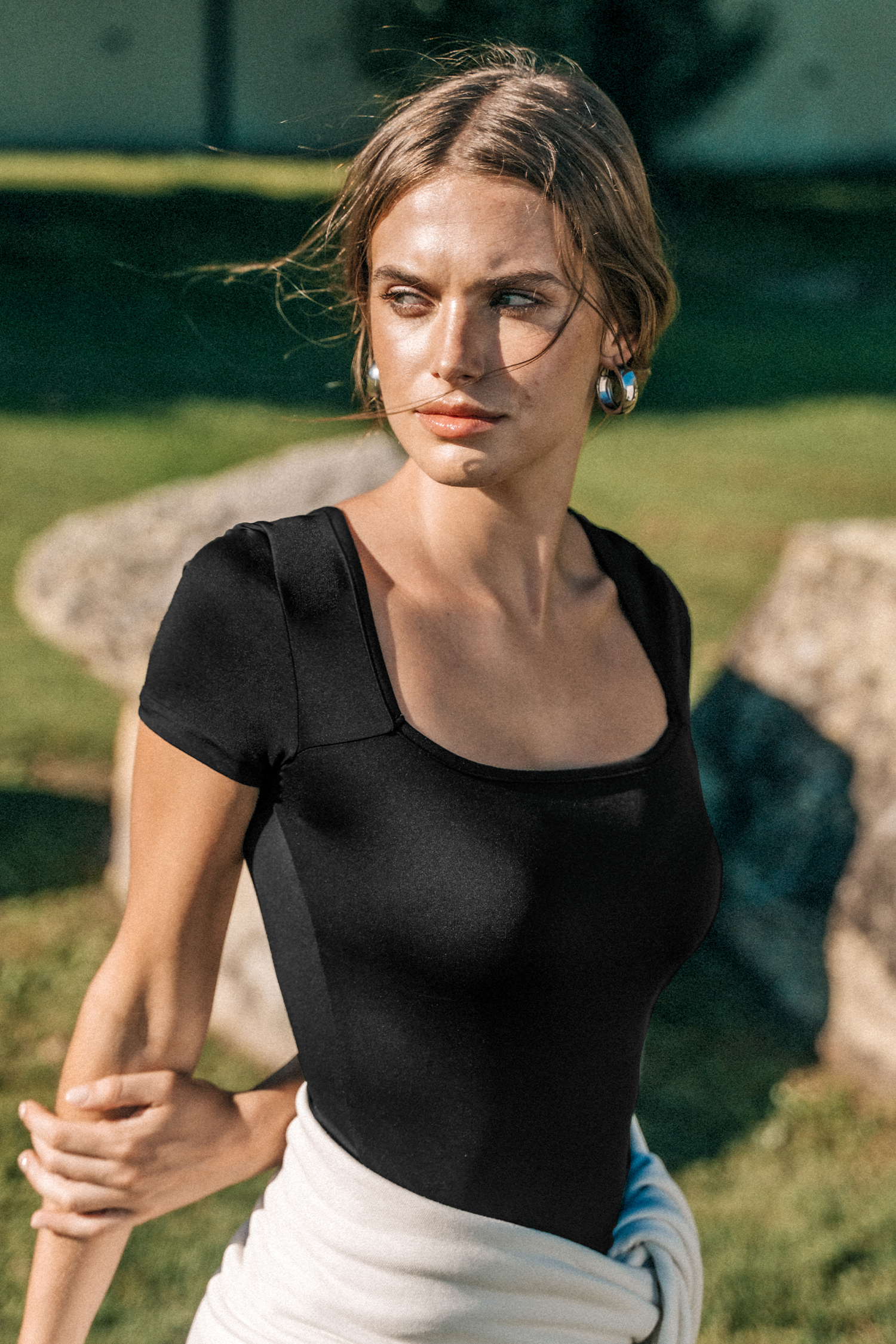 Schwarzer Kurzarm Jersey-Bodysuit mit quadratischem Ausschnitt