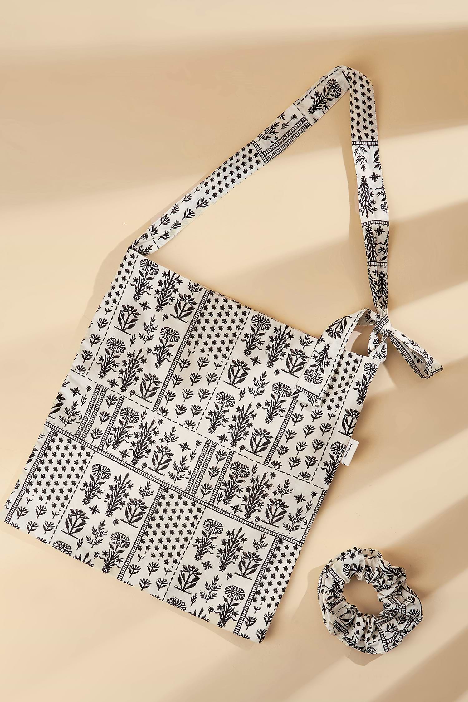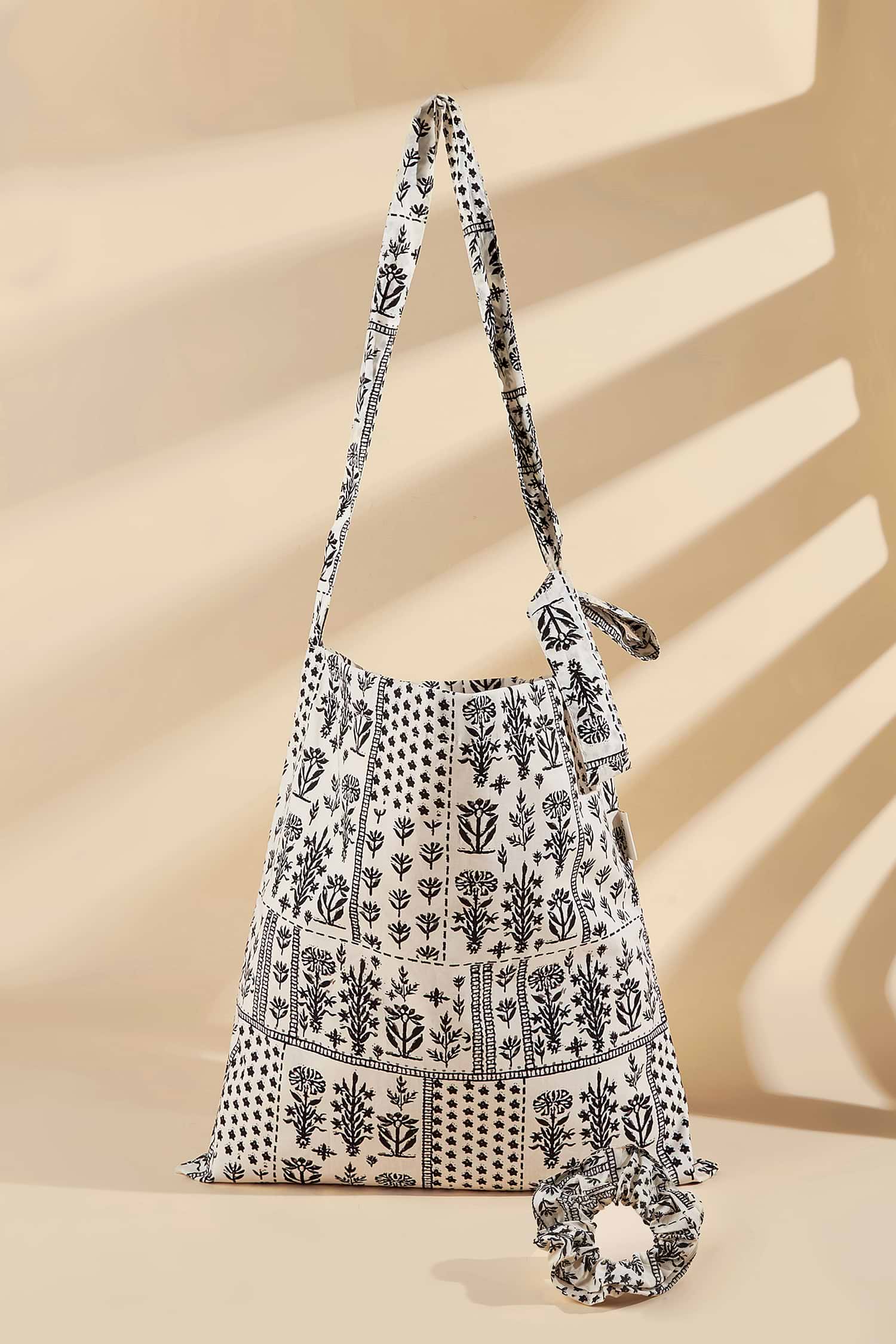 HomeSchwarz-weiße Umhängetasche mit Blumendruck