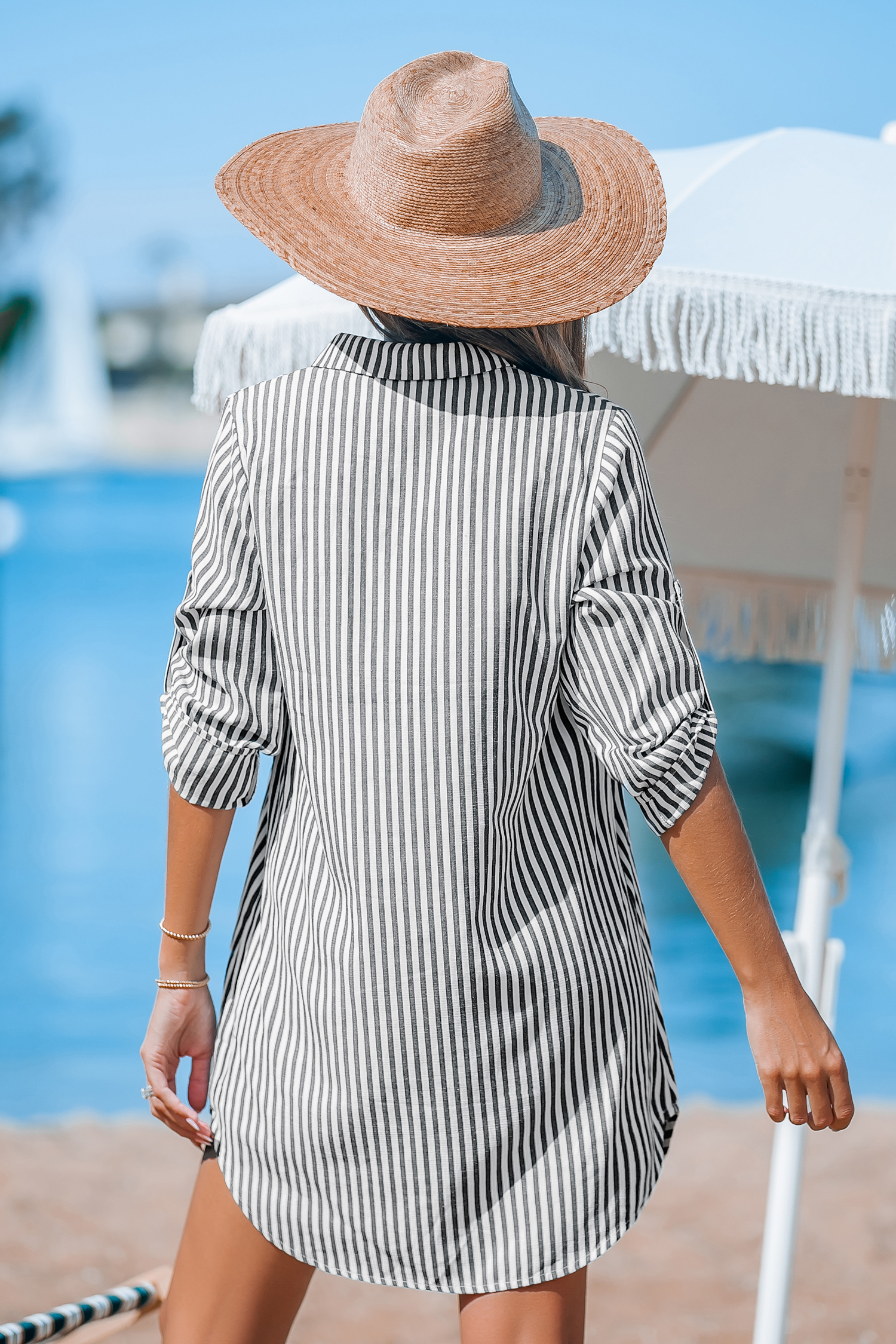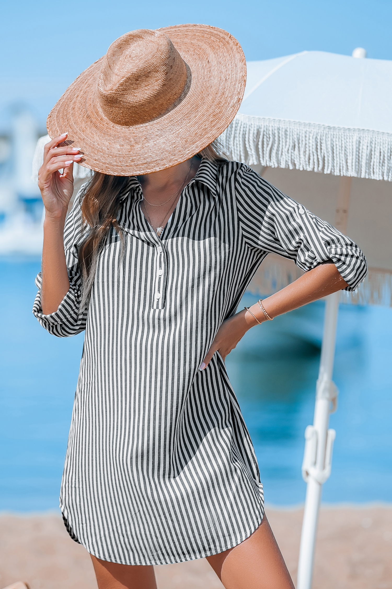 Schwarz-weiß gestreiftes Minikleid mit rundem Saum