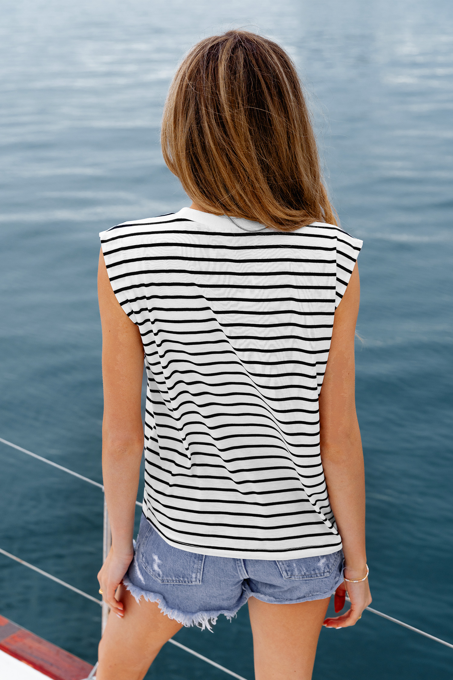 Schwarz-weiß gestreiftes T-Shirt mit Rundhalsausschnitt