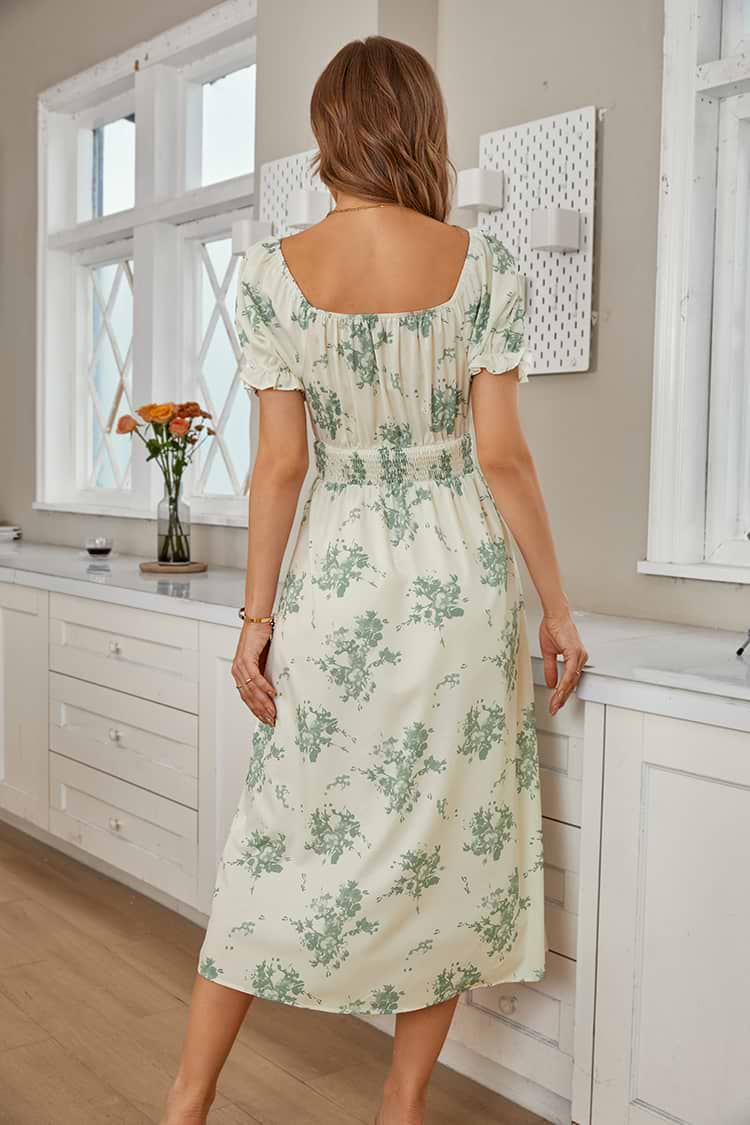 Blasenhülse A-förmiges Kleid mit Blumendruck und quadratischem Ausschnitt