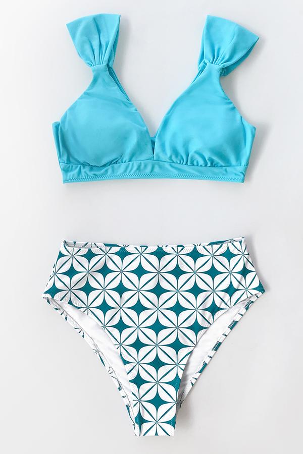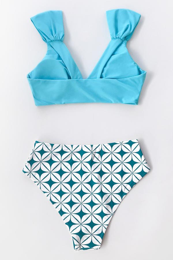 Blauer geometrischer Bikini mit V-Ausschnitt