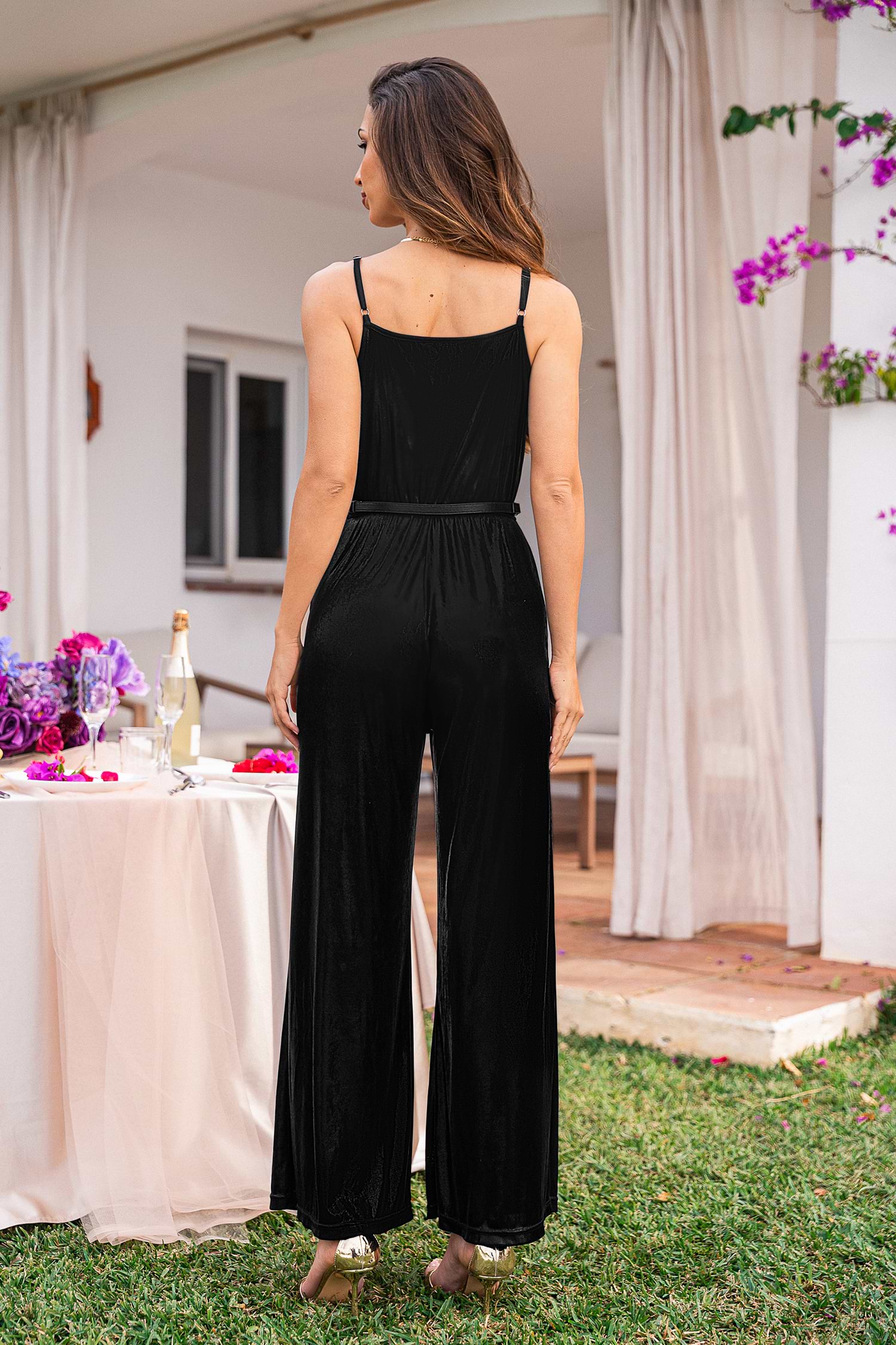 Der metallisch glänzende Jumpsuit ist umwerfend, selbstbewusst und ein echter Hingucker! Der Wickelausschnitt, der ärmellose Schnitt und die gerade Beinform sorgen für einen eleganten und ausdrucksstarken Look.