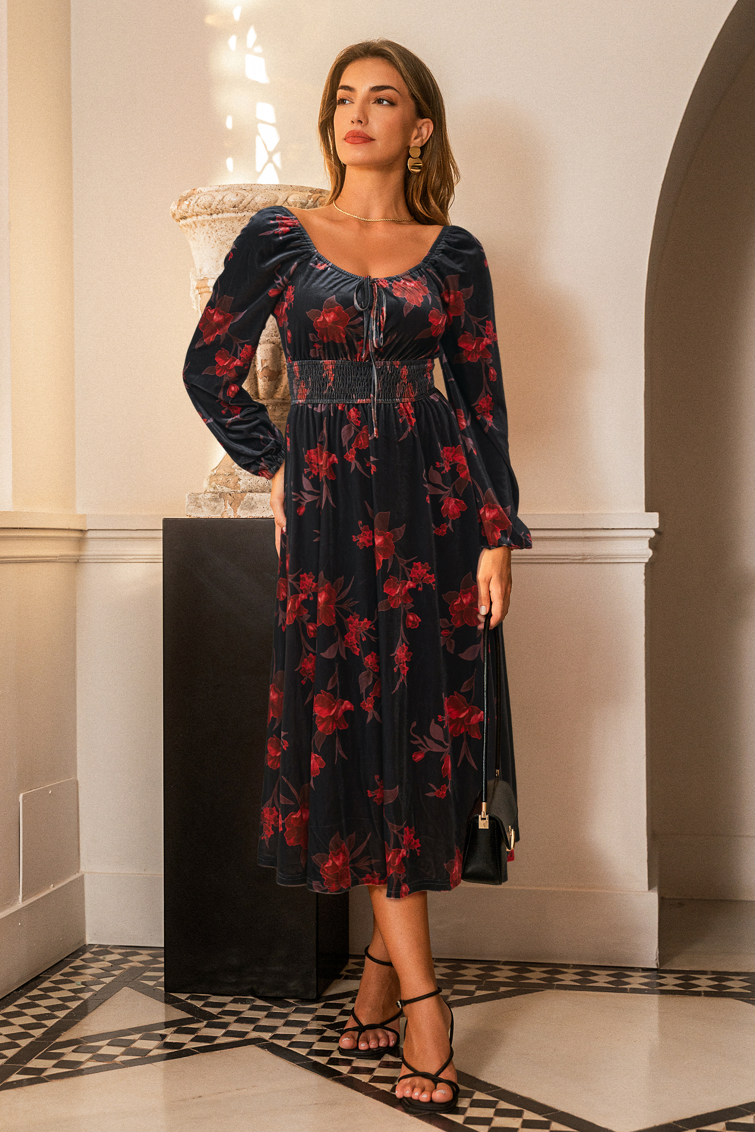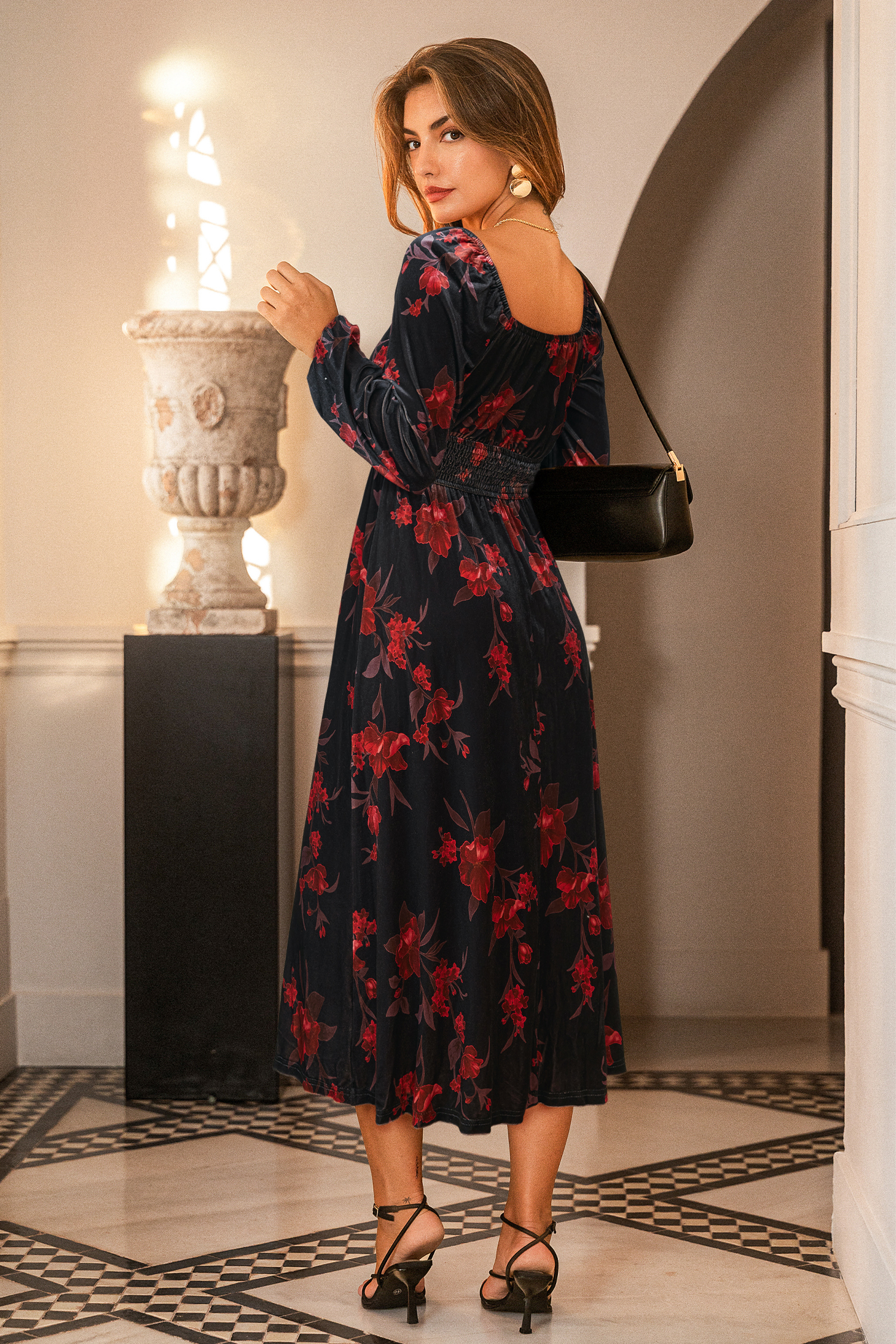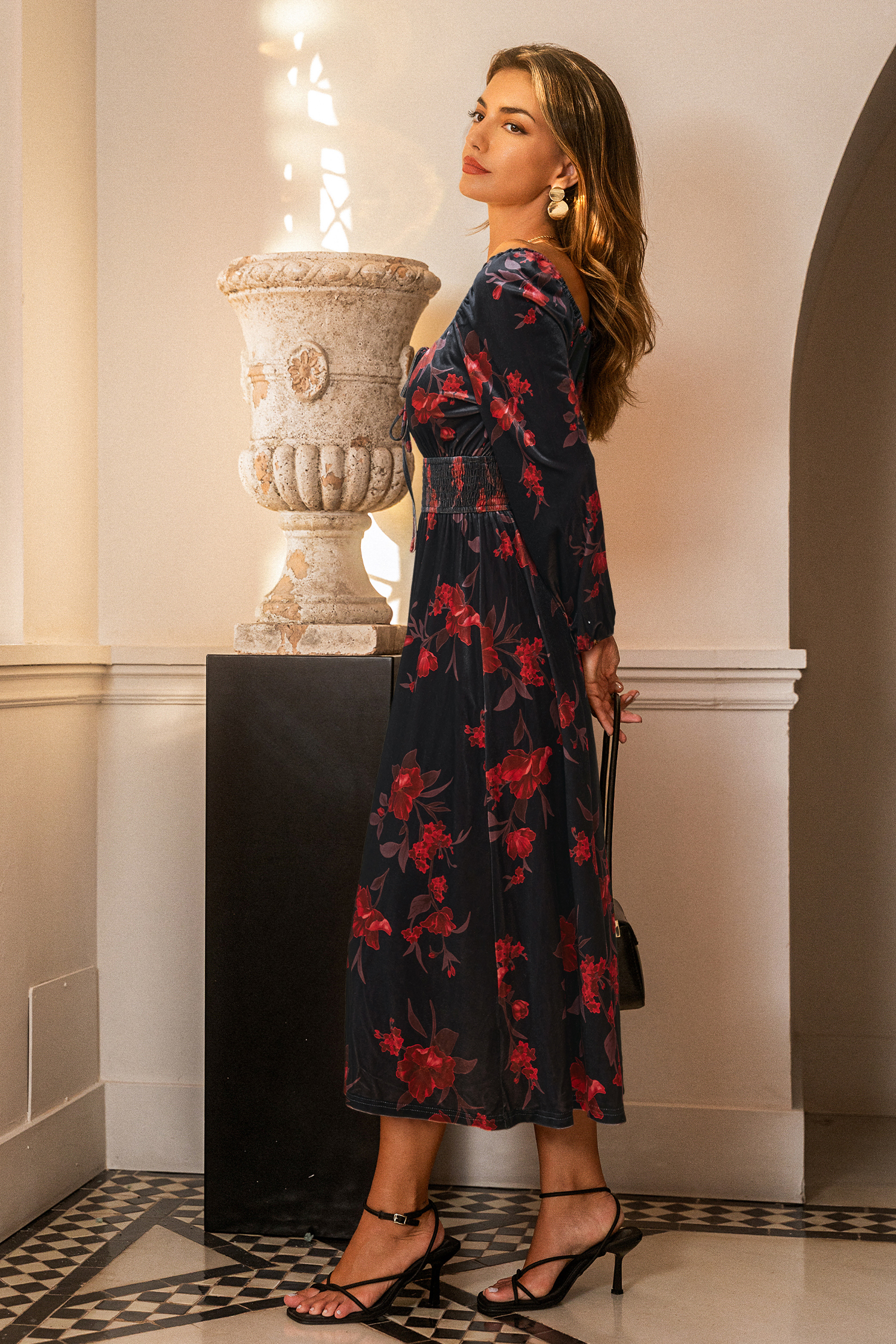 Das florale Maxikleid ist mühelos romantisch und kokett! Der quadratische Ausschnitt mit langen Ärmeln und die fließende Maxilänge sorgen für einen traumhaften, gartentauglichen Look.