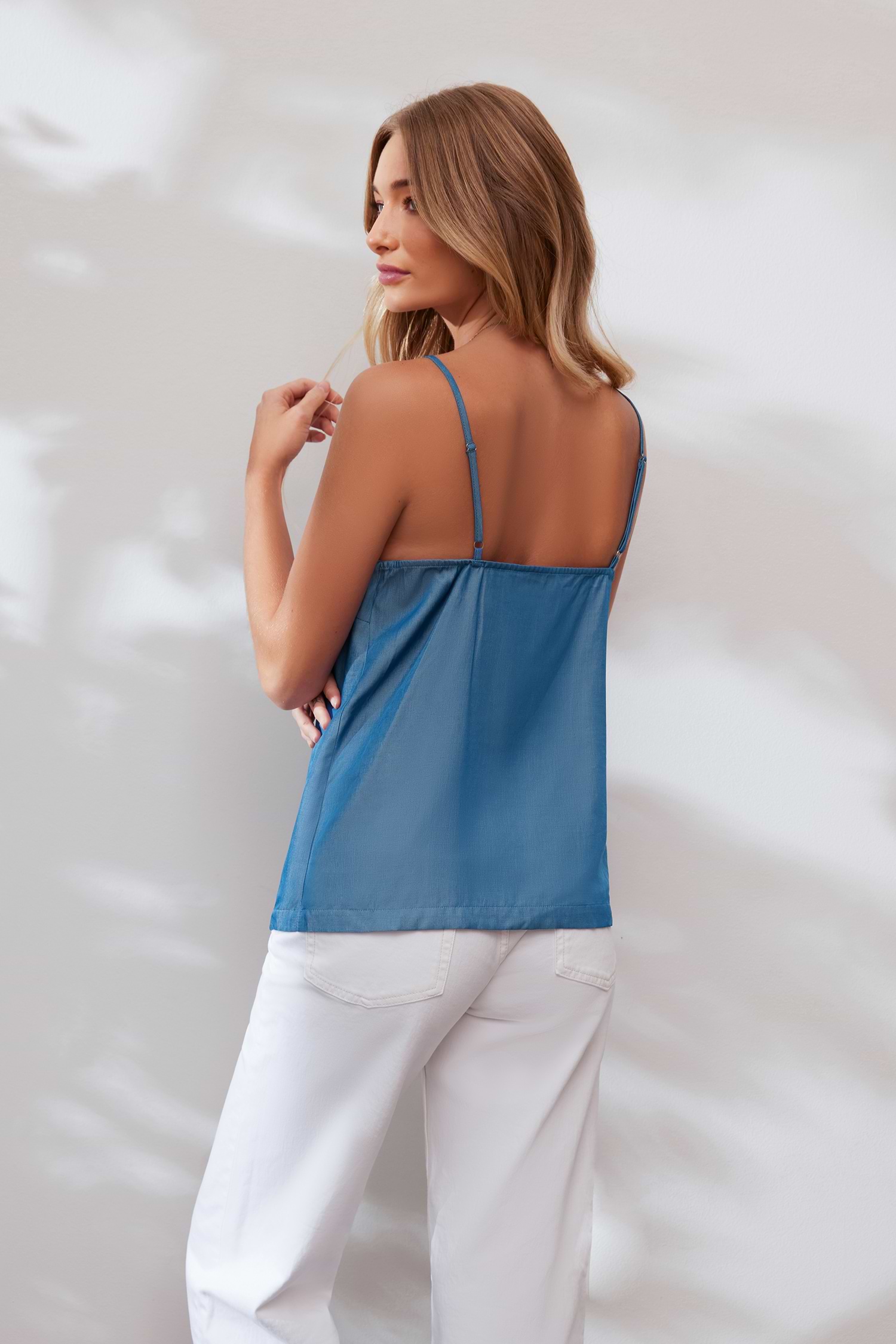Blaues Cami mit quadratischem Ausschnitt und Knopfleiste
