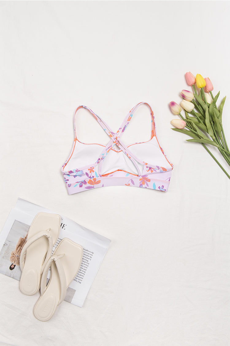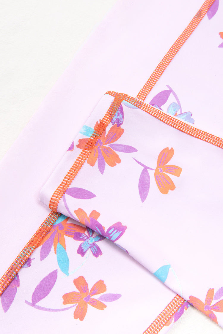 Blumendruck Activewear Set Criss Cross Rückenträger Sport-BHs und Leggings