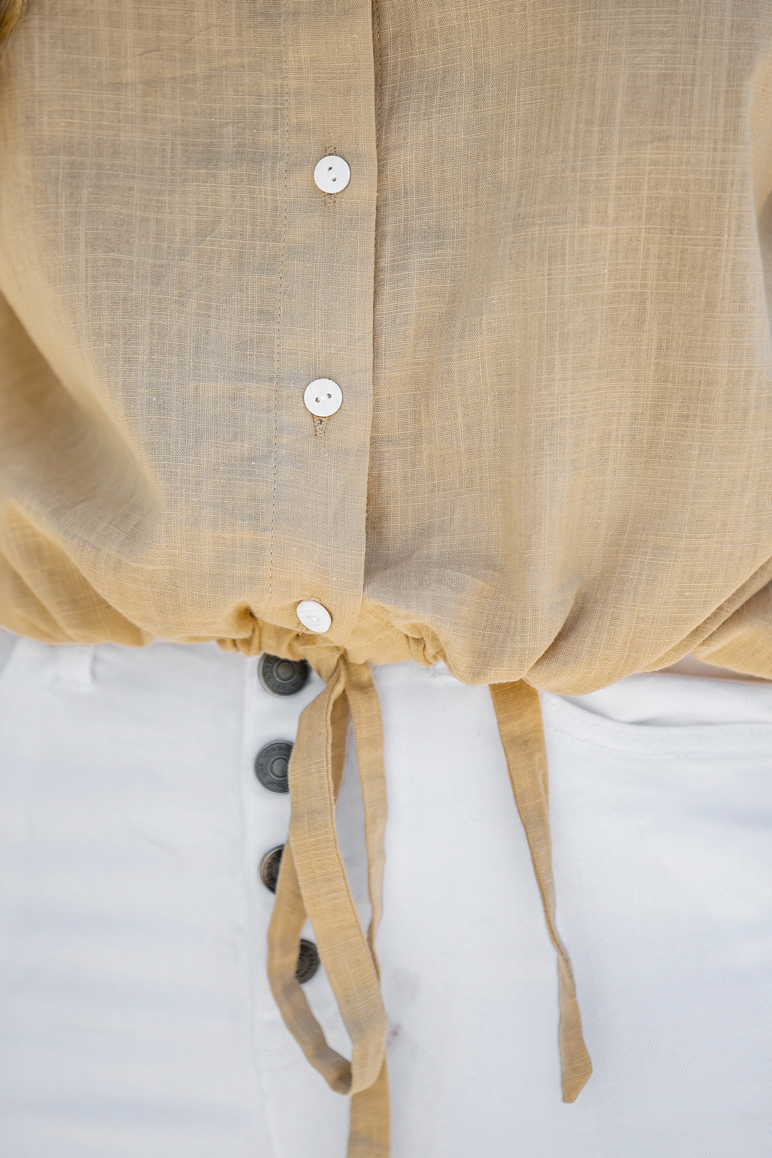 Reine Baumwolle Bluse mit Kordelzug und Dolman-Ärmeln
