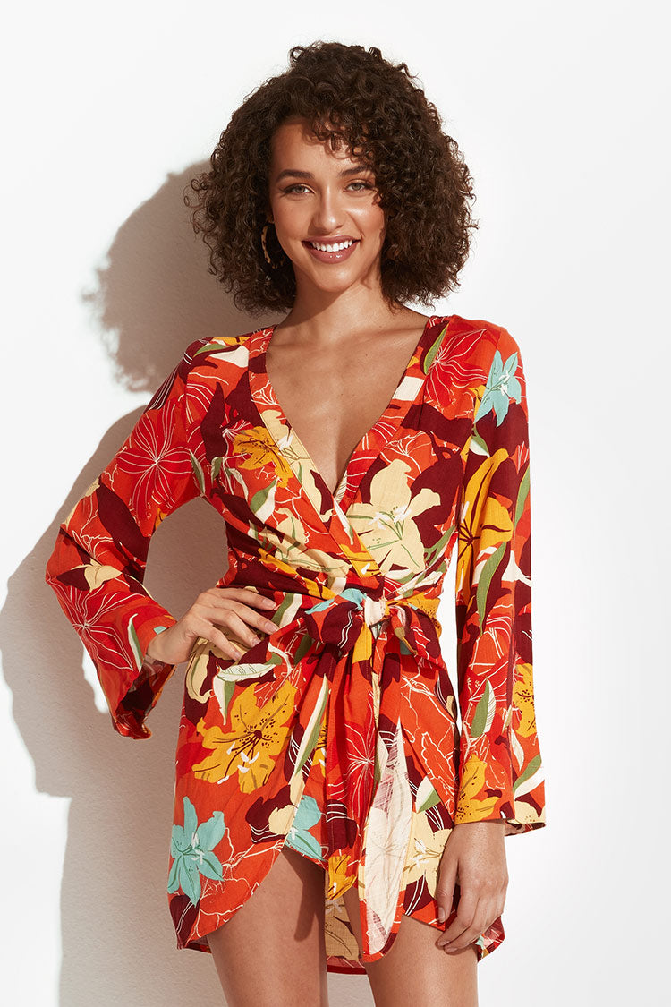 HomeBodycon-Kleid mit V-Ausschnitt und Blumenmuster
