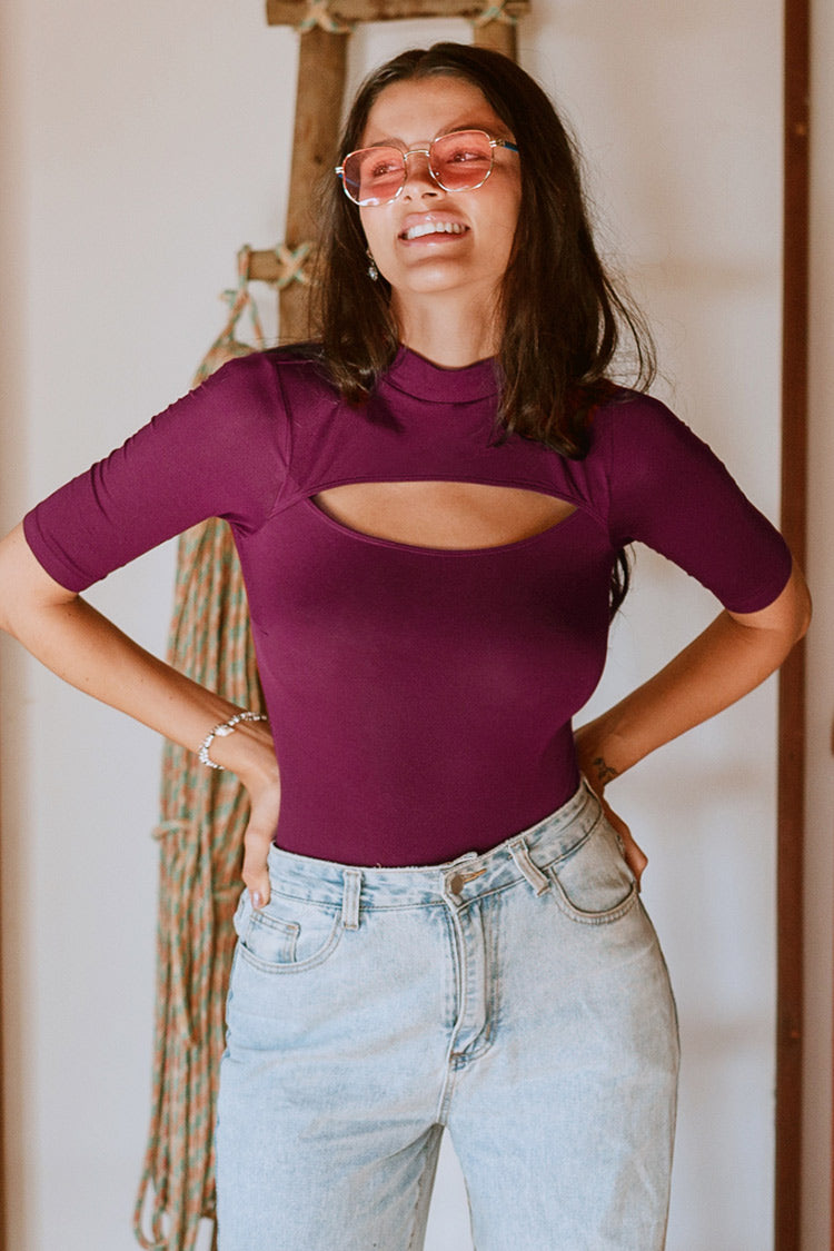 Bodysuit mit halben Ärmeln und Cut Out-Design