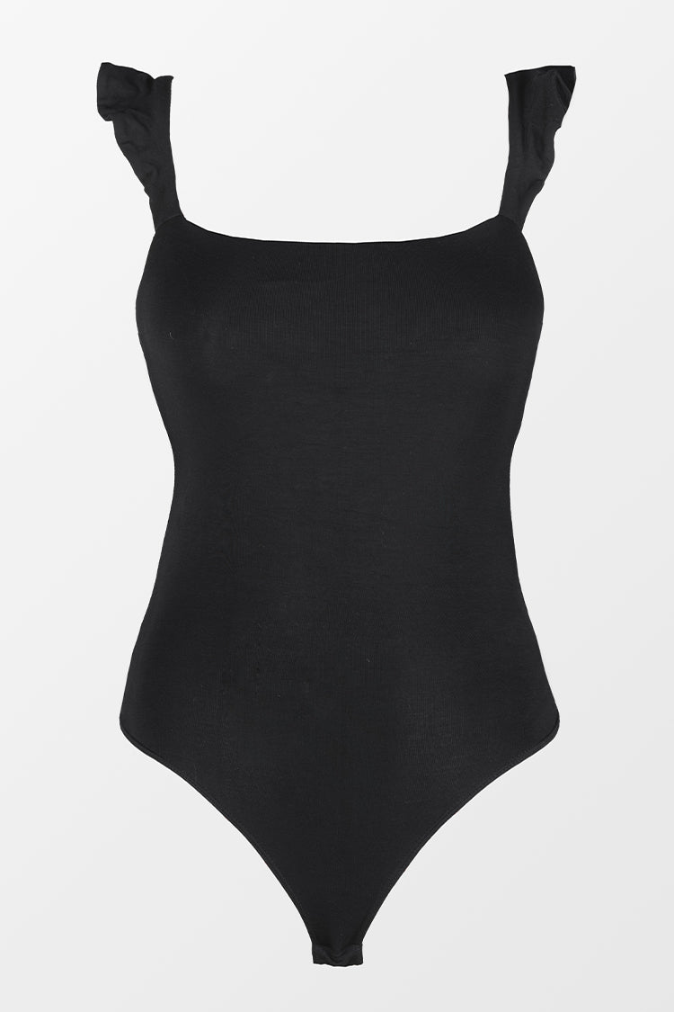 Bodysuit mit quadratischem Halsausschnitt und Rüschen
