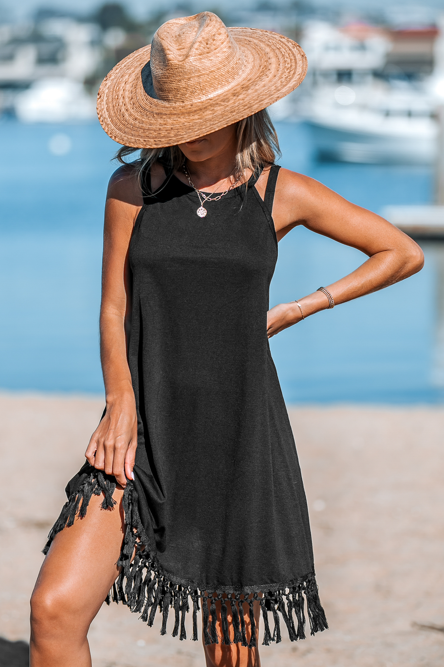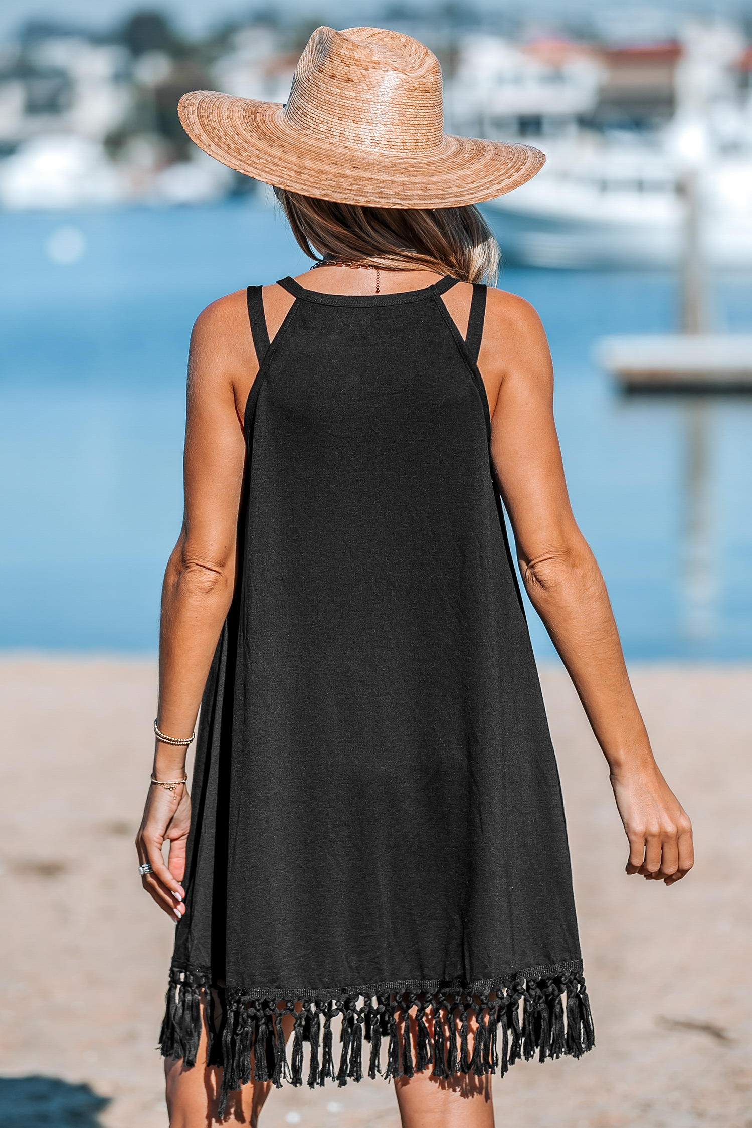 Boho Braunes Tiefer Ausschnitt Lange Ärmel Minikleid