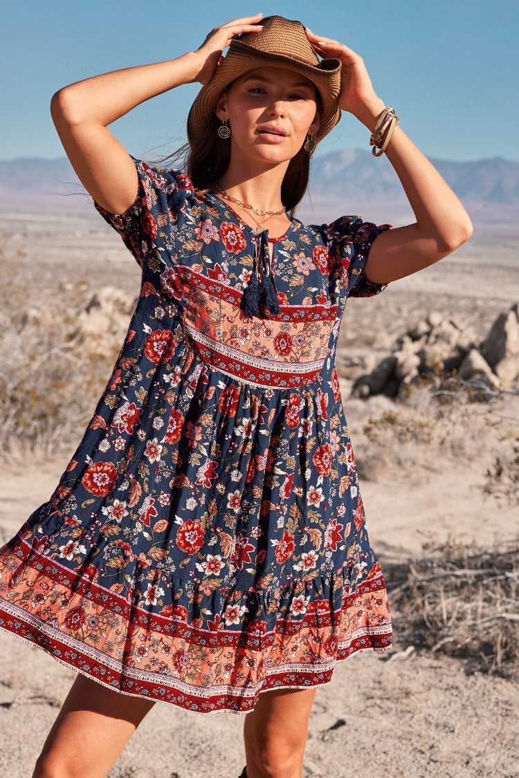 HomeBoho Kleid mit Blasenärmeln und Quasten