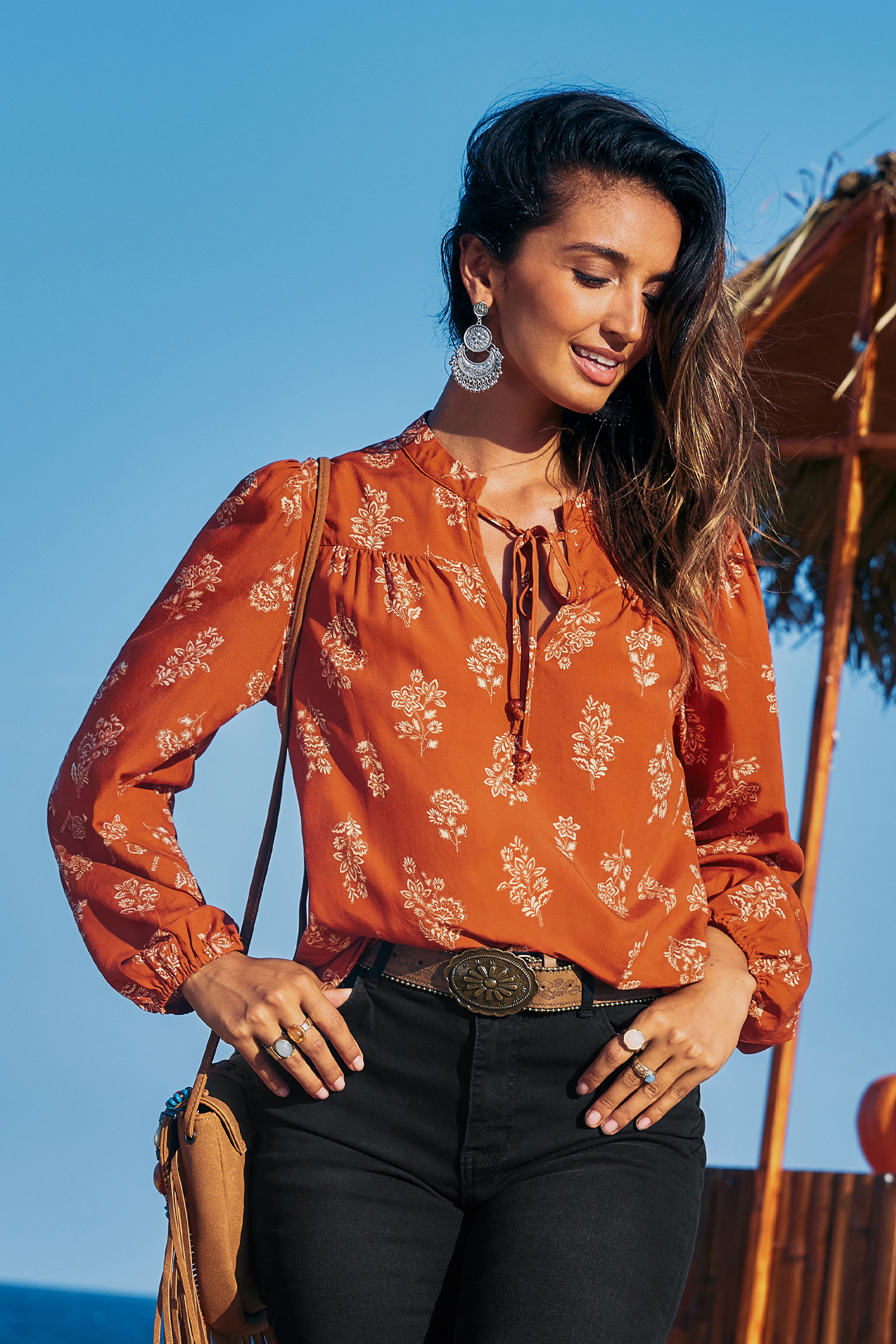 StartseiteBoho Verziertes Lange Ärmel Top