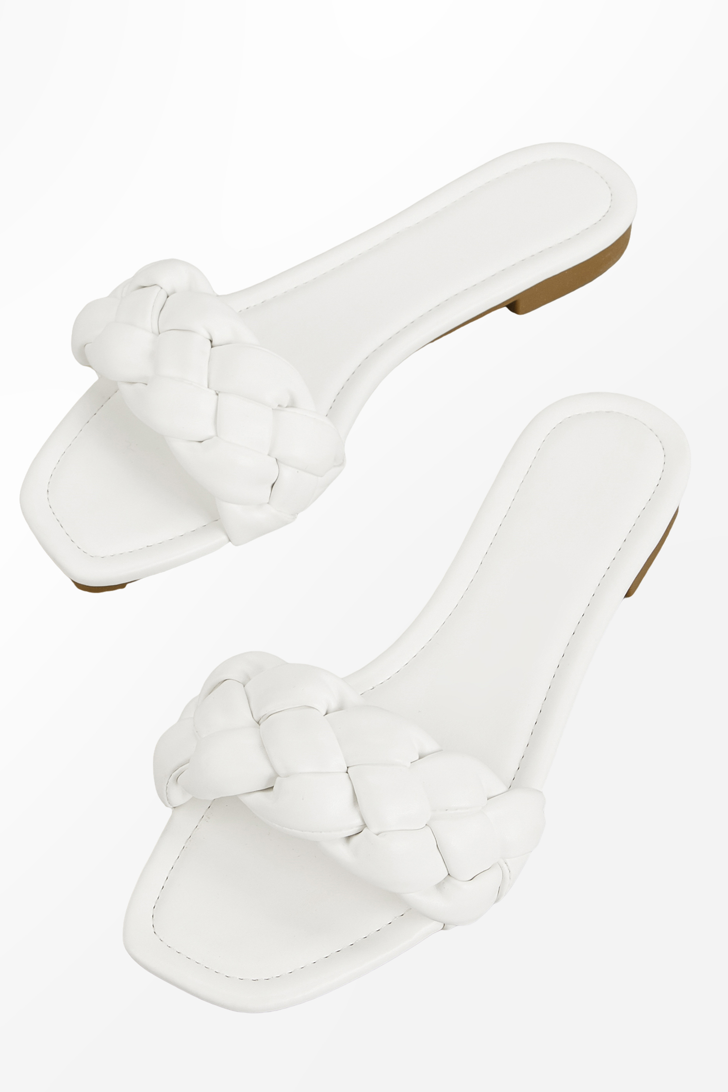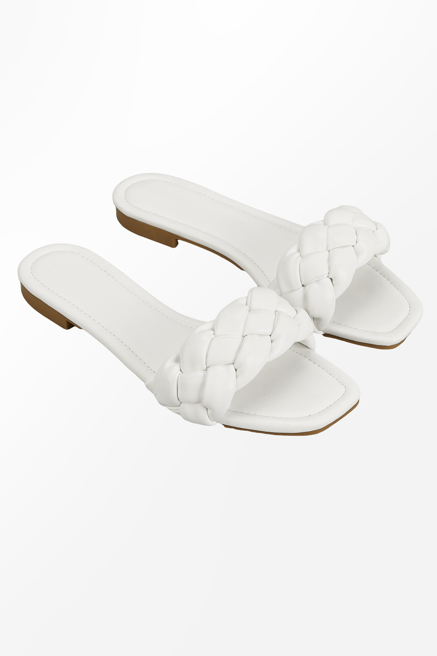 Geflochtene flache Sandalen mit quadratischer Zehenpartie
