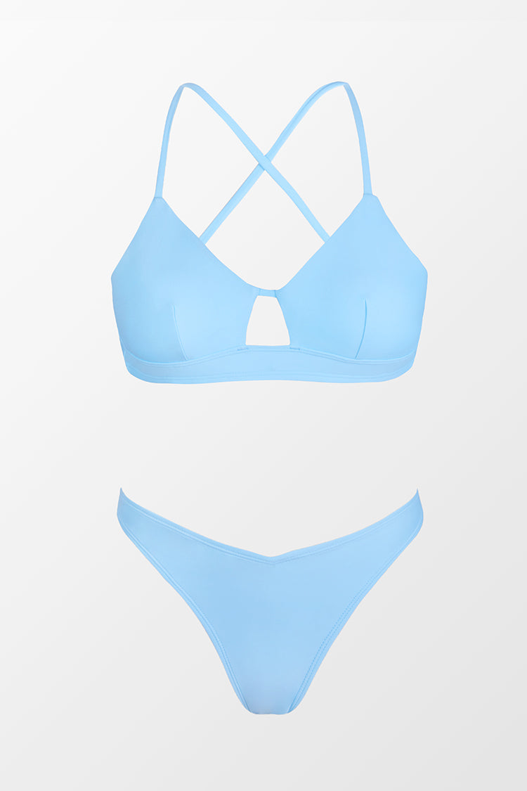 Bralette-Bikinioberteil und Bikinihose mit V-Front