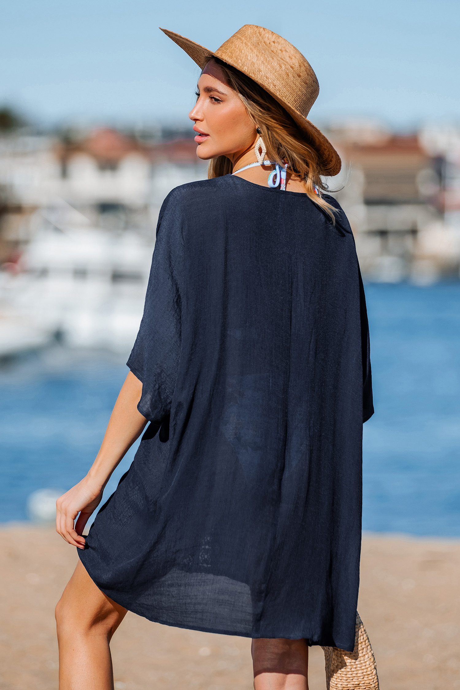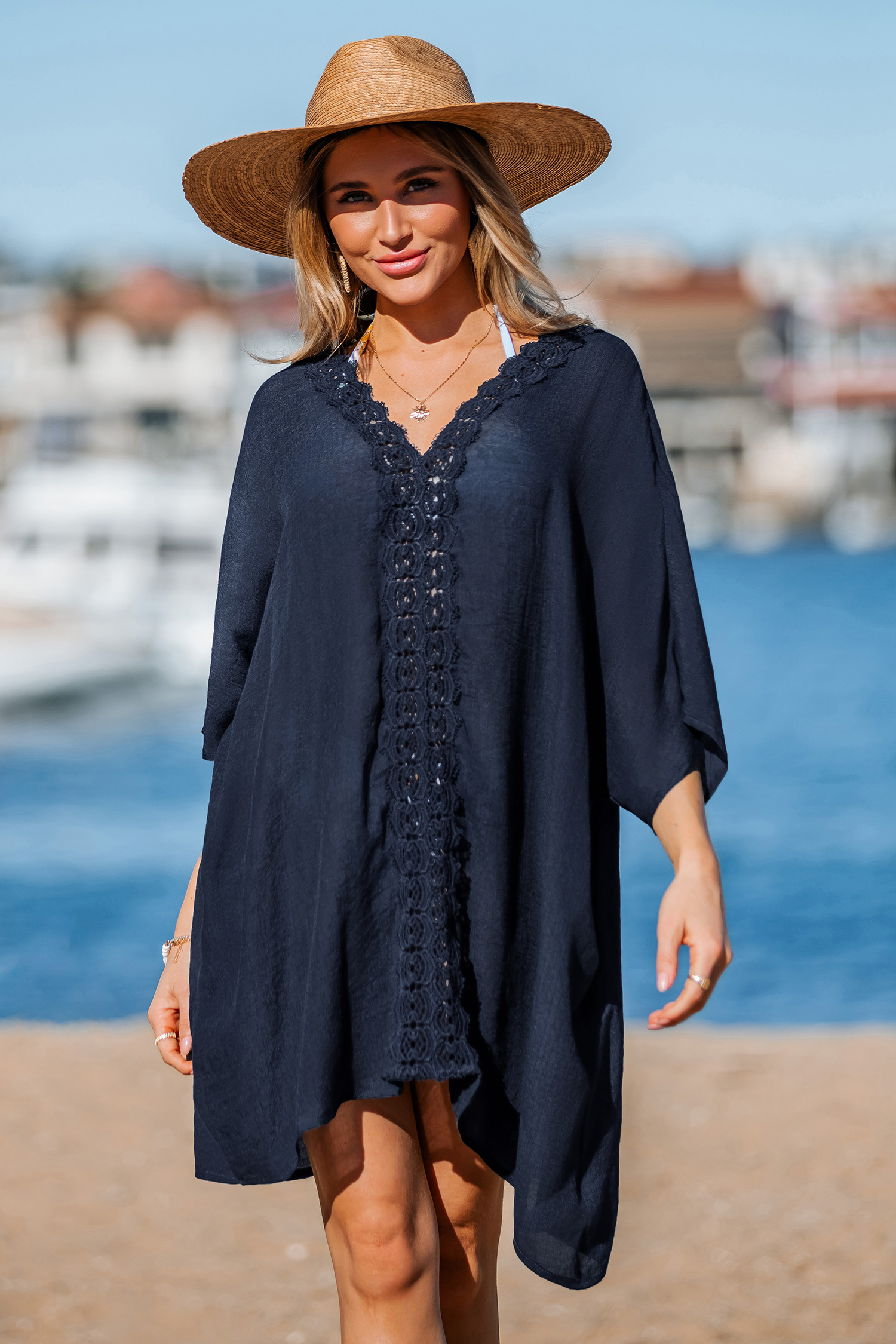 Marinefarbenes Mini-Strandkleid mit Kontrastspitze